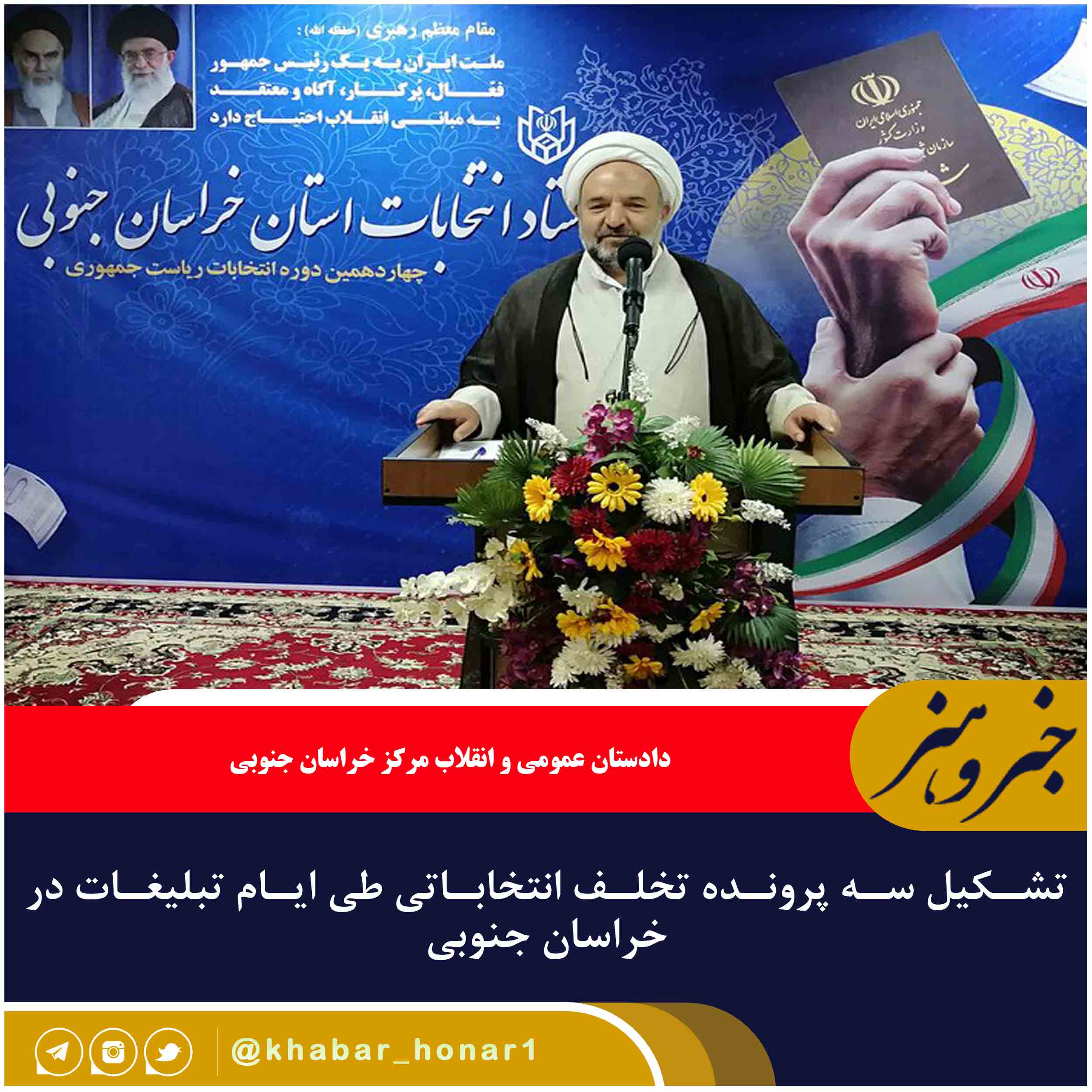 دادستان عمومی و انقلاب مرکز خراسان جنوبی گفت: سه پرونده تخلف انتخاباتی طی ایام تبلیغات مرحله دوم انتخابات چهاردهیمن دوره ریاست جمهوری در خراسان جنوبی تشکیل شد.
