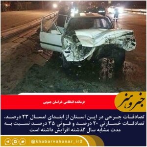 فرمانده انتظامی خراسان جنوبی گفت: تصادفات جرحی در این استان از ابتدای امسال ۲۳ درصد، تصادفات خسارتی ۲۰ درصد و فوتی ۳۵ درصد نسبت به مدت مشابه سال گذشته افزایش داشته است.