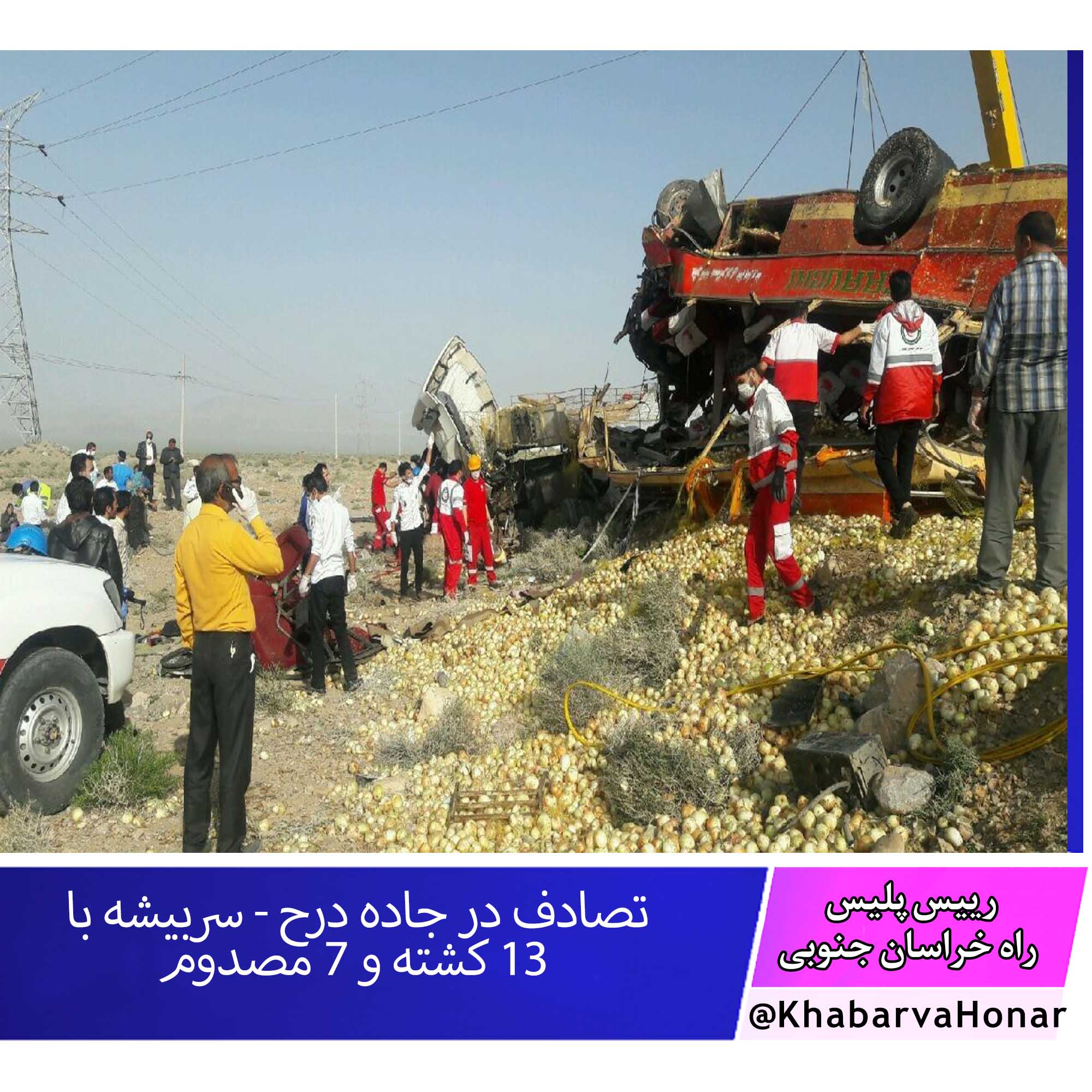 رییس پلیس راه خراسان جنوبی گفت: برخورد تریلی و اتوبوس صبح امروز (سهشنبه) در محور درح به سربیشه ۱۳ کشته و هفت مصدوم برجا گذاشت.