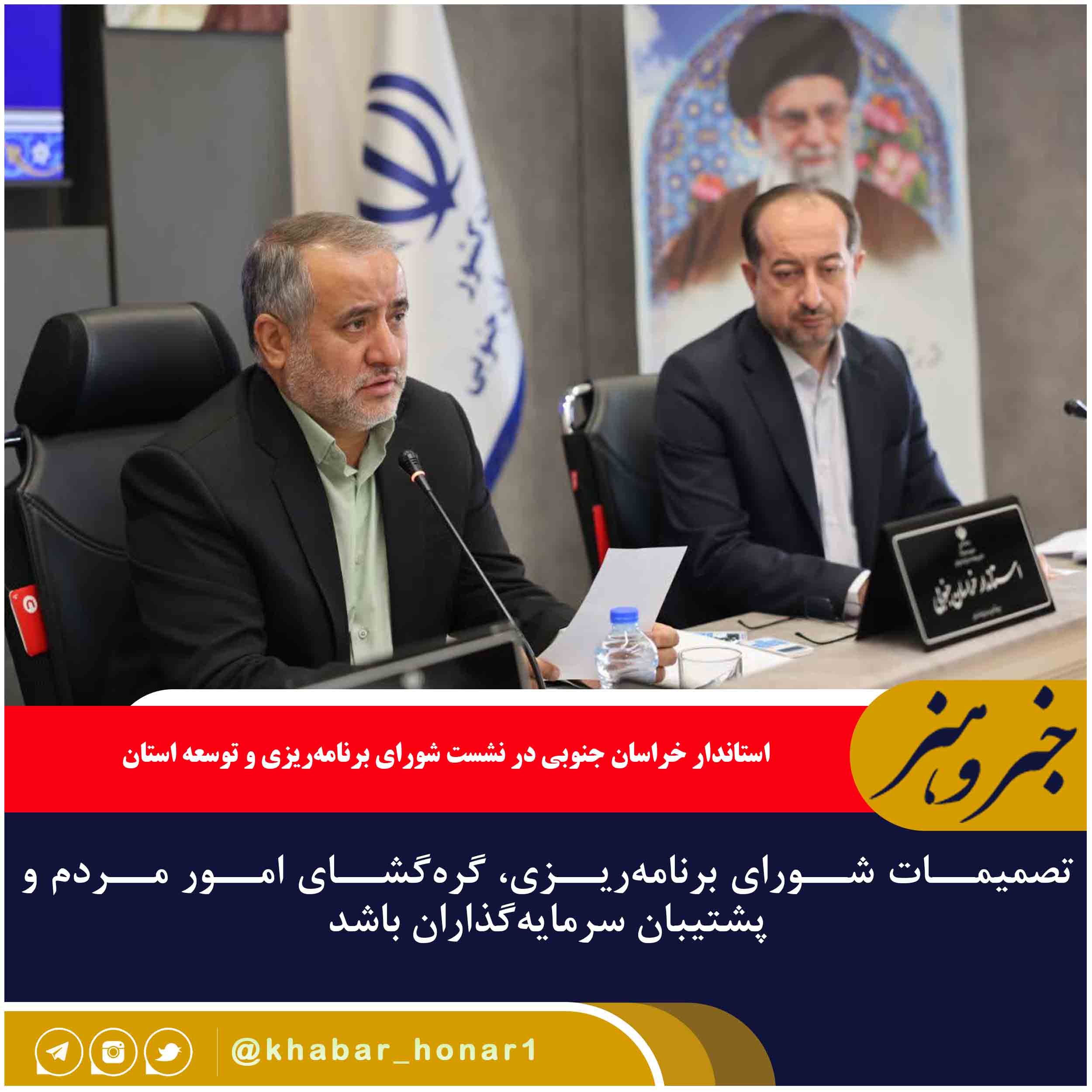 🔹استاندار خراسان جنوبی در نشست شورای برنامهریزی و توسعه استان گفت: مصوبات و تصمیمات اتخاذ شده در شورای برنامهریزی و توسعه استان باید گرهگشای امور مردم و پشتیبان سرمایهگذاران باشد.