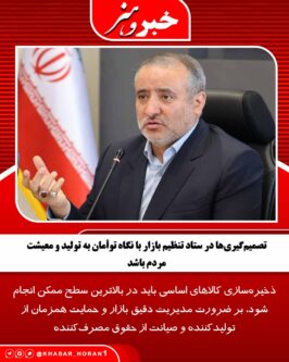 وی با اشاره به در پیش بودن خریدهای نوروزی، بر تشدید نظارت بر بازار پوشاک، کفش و سایر اقلام مصرفی تأکید کرد و افزود: تأمین و توزیع میوه شب عید باید همانند سال گذشته با کیفیت مطلوب و در گستره جغرافیایی وسیع، به‌ویژه در مناطق دوردست و روستاها، انجام شود تا همه مردم از خدمات تنظیم بازار بهره‌مند شوند.