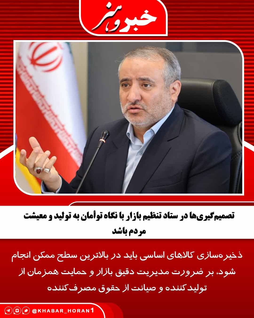 تصمیم‌گیری‌ها در ستاد تنظیم بازار با نگاه توأمان به تولید و معیشت مردم باشد