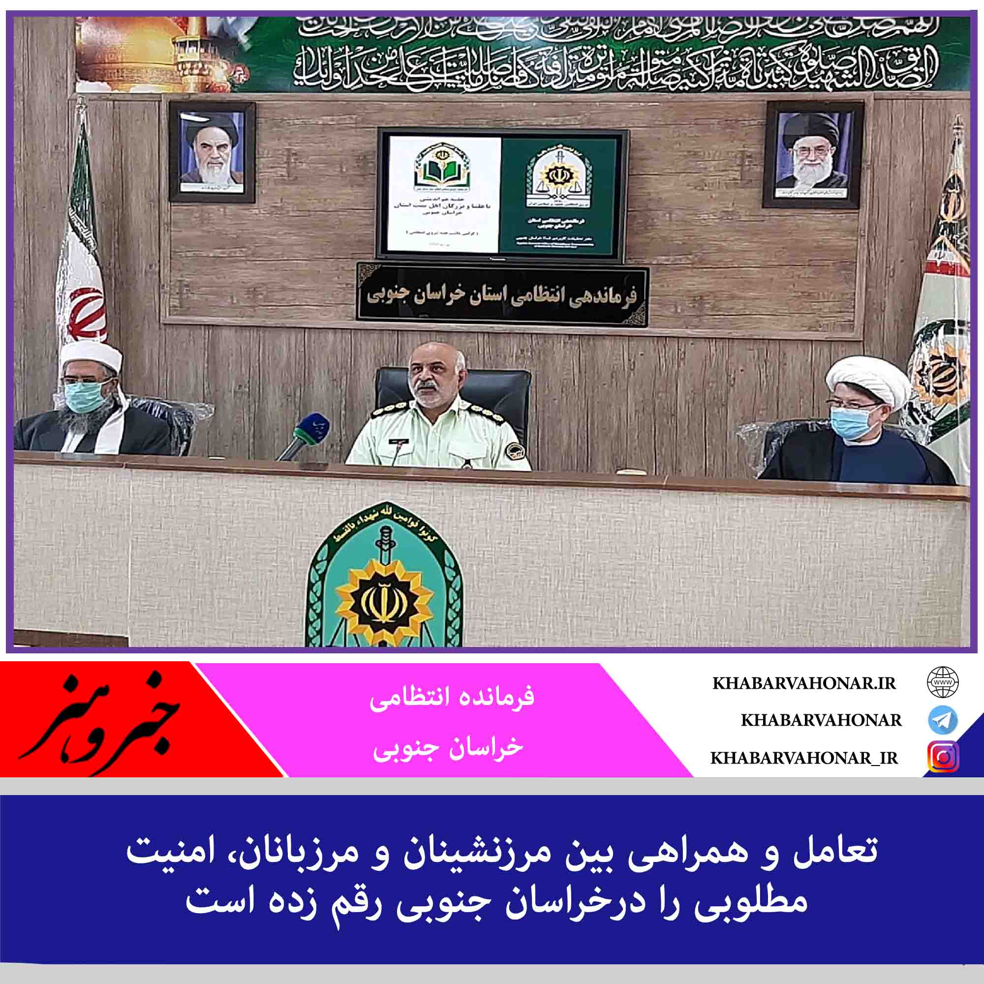 فرمانده انتظامی خراسان جنوبی گفت: تعامل و همراهی بین مرزنشینان و مرزبانان، امنیت مطلوبی را در این استان رقم زده است و این تعاملات باید حفظ شود تا شاهد امنیت هرچه بیشتر در خراسان جنوبی و نوار مرزی شرق کشور باشیم.