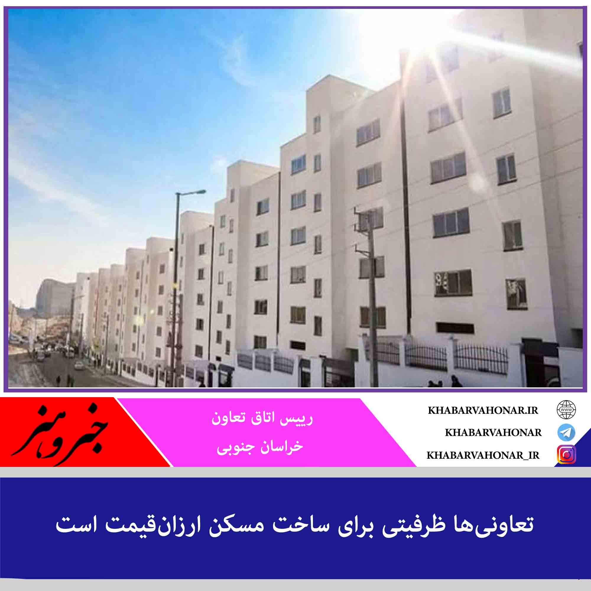 رییس اتاق تعاون خراسان جنوبی گفت: تعاونیها شبکه گستره بسیار قوی هستند که هر وقت نظام تصمیم به ساخت مسکن ارزانقیمت برای مردم گرفته، به سمت تعاونیها رفته است.