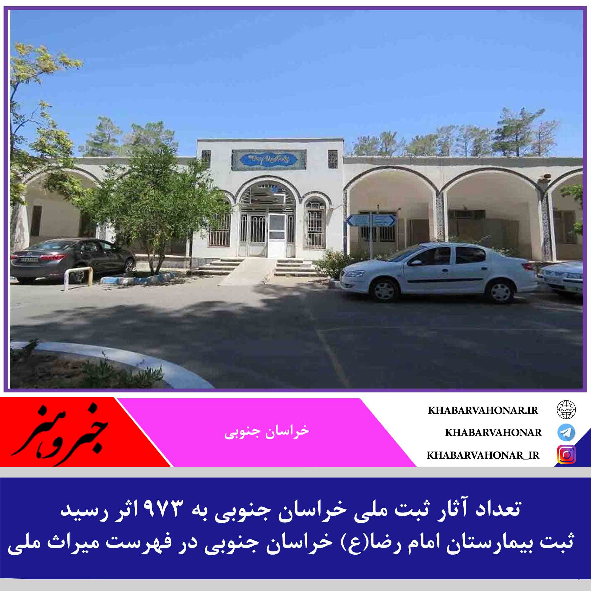 وی گفت: بیمارستان امام رضا (ع) شهر بیرجند به عنوان نخستین بیمارستان استان خراسان جنوبی و شهر بیرجند در فهرست میراث ملی ثبت شد.