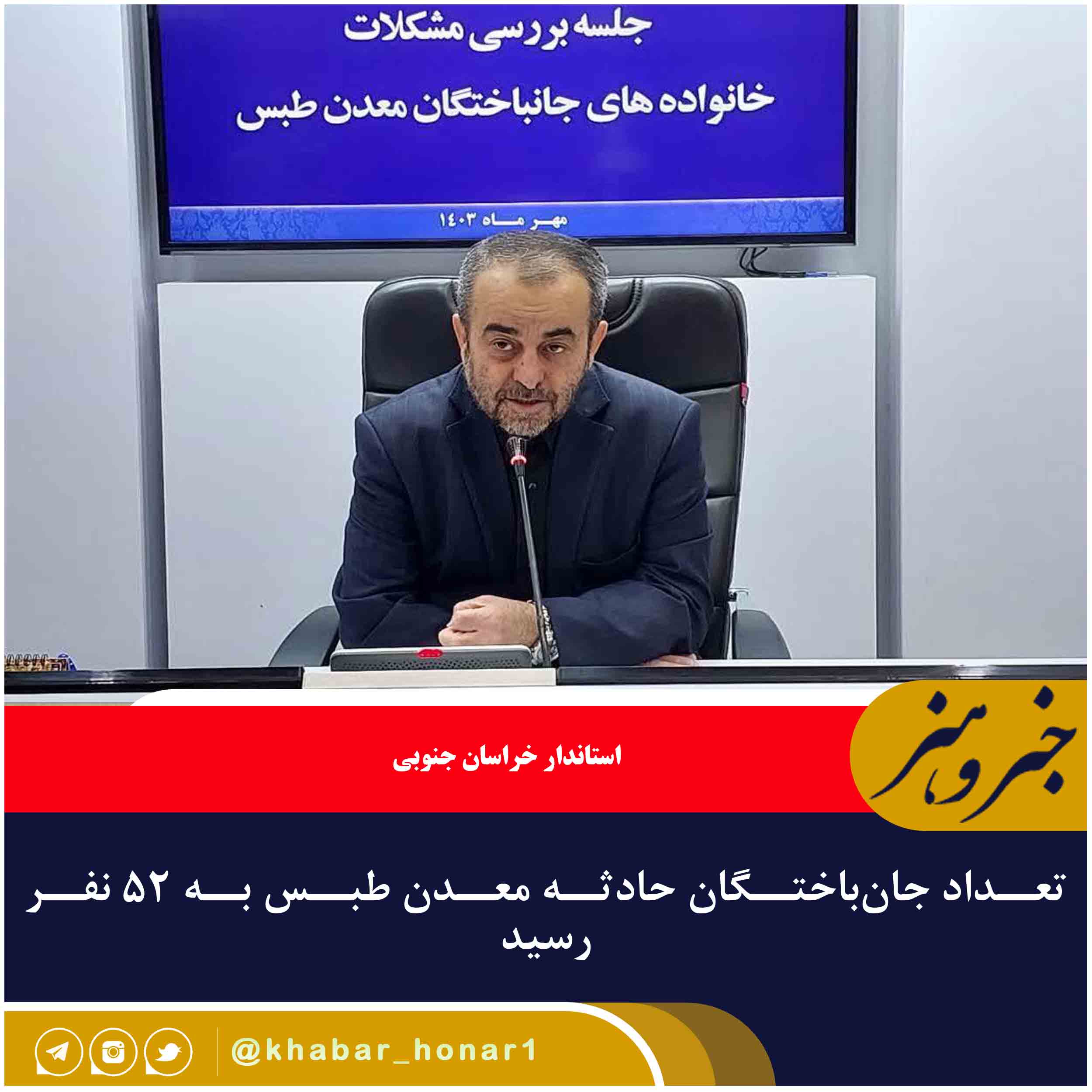 استاندار خراسان جنوبی گفت: با فوت یکی دیگر از مصدومان حادثه معدن طبس در بیمارستان یزد تعداد جانباختگان این حادثه به ۵۲ نفر رسید.