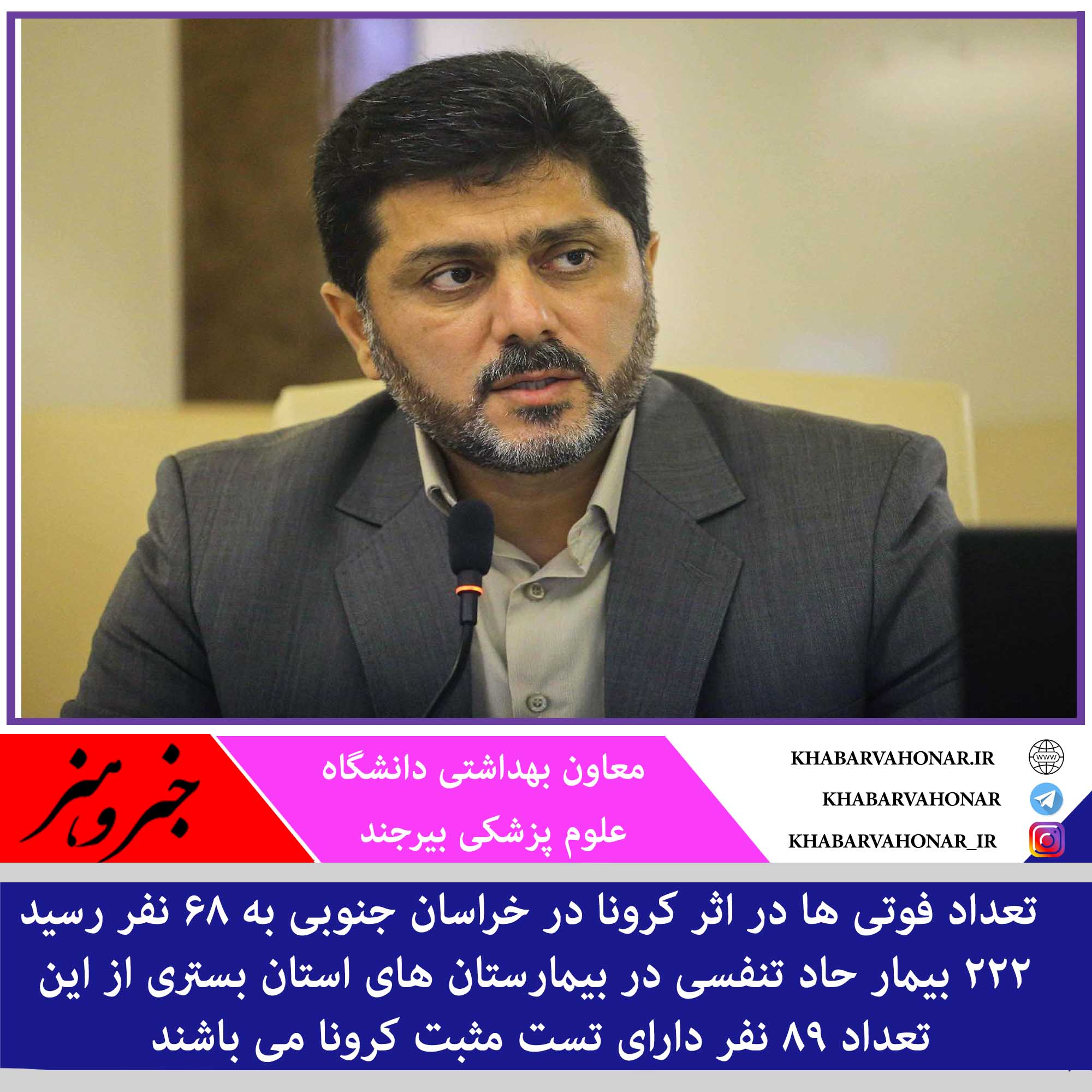 ?معاون بهداشتی دانشگاه علوم پزشکی بیرجند، با بیان اینکه ۲۲۲ بیمار حاد تنفسی در بیمارستان های استان بستری هستند، گفت: از این تعداد ۸۹ نفر دارای تست مثبت کرونا می باشند.