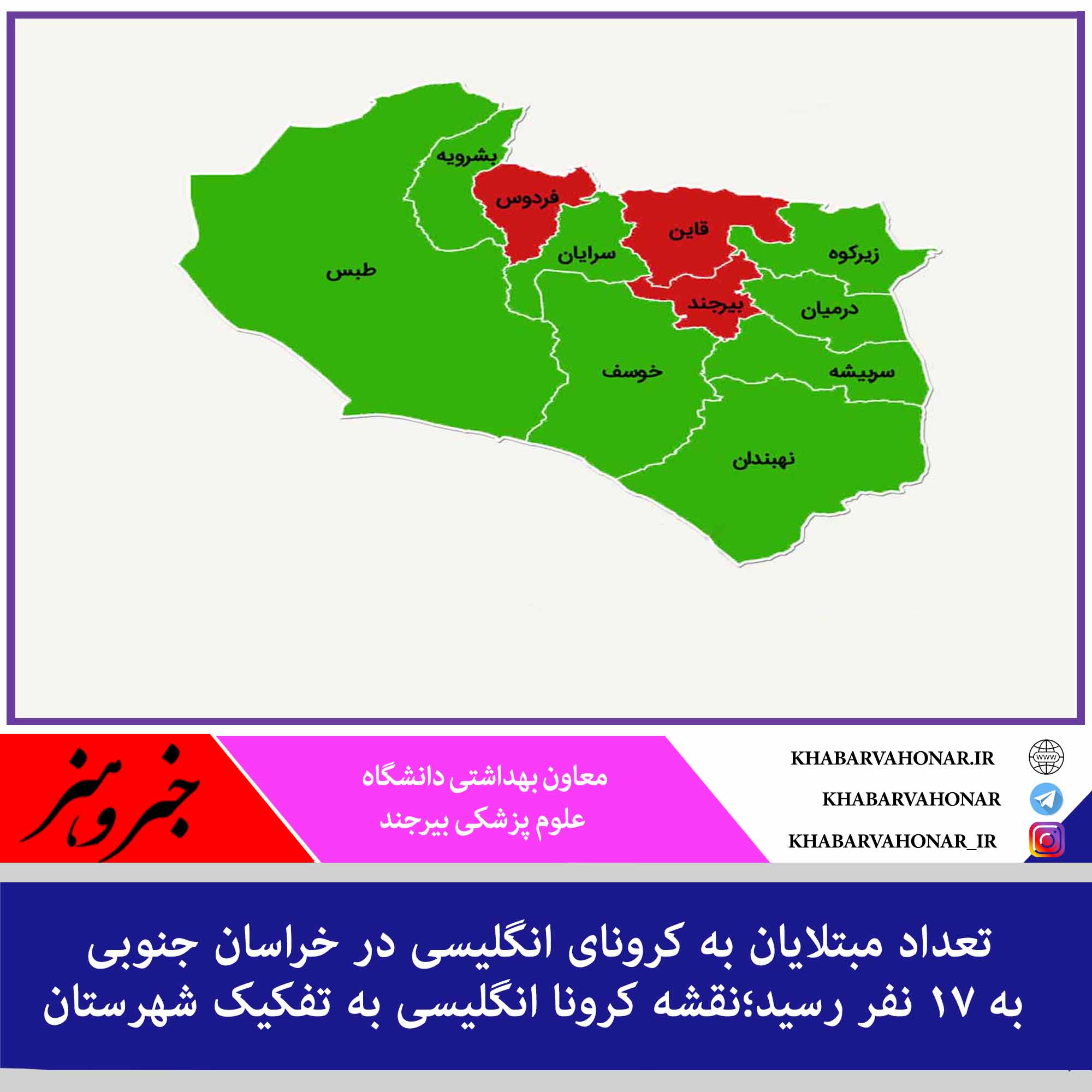 ?معاون بهداشتی دانشگاه علوم پزشکی بیرجند گفت: از این تعداد ۱۴ مورد مربوط به شهرستان بیرجند، دو مورد از شهرستان قاین و یک مورد از شهرستان فردوس بوده است.
