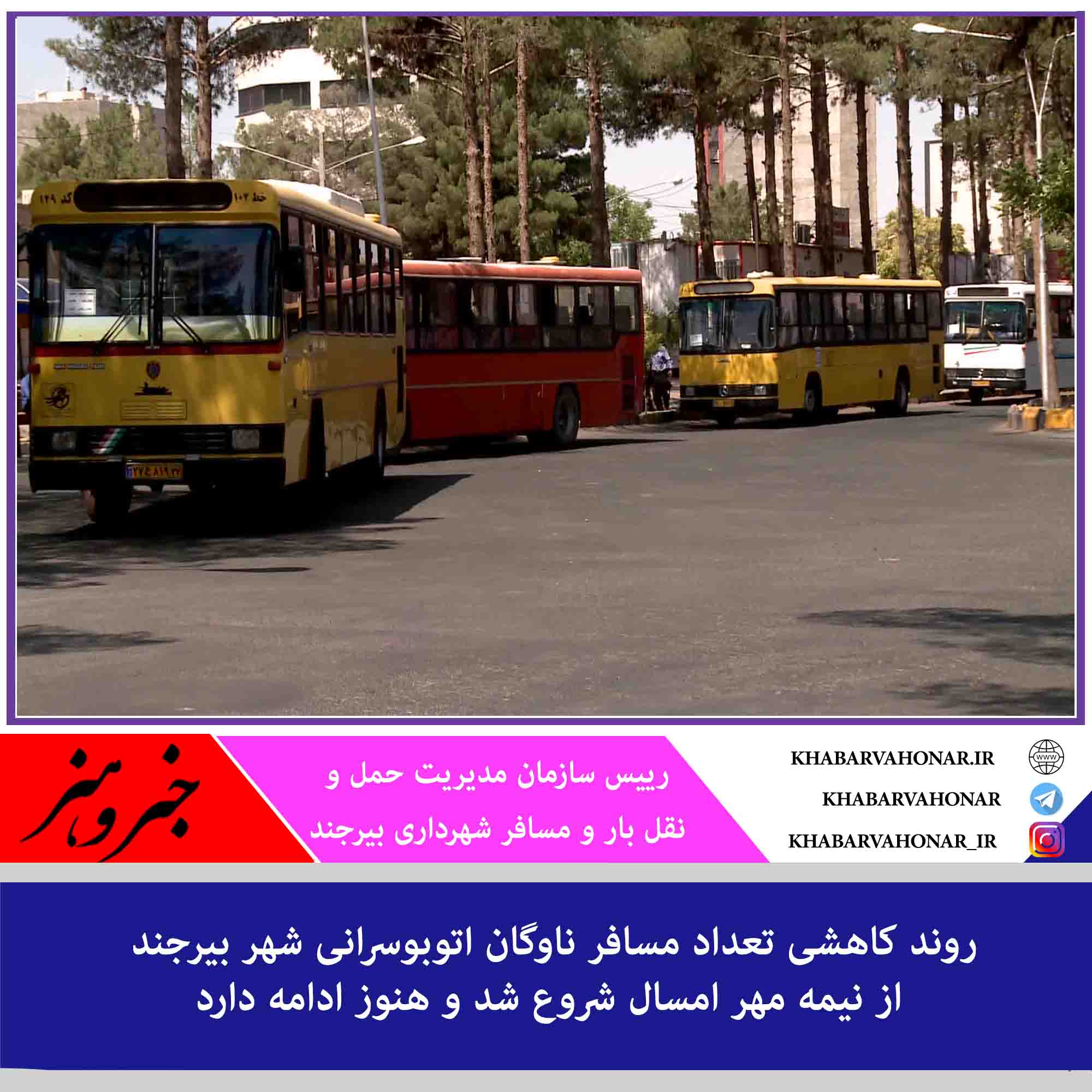 رییس سازمان مدیریت حمل و نقل بار و مسافر شهرداری بیرجند گفت: روند کاهشی تعداد مسافر ناوگان اتوبوسرانی شهر بیرجند از نیمه مهر امسال شروع شد و هنوز ادامه دارد.