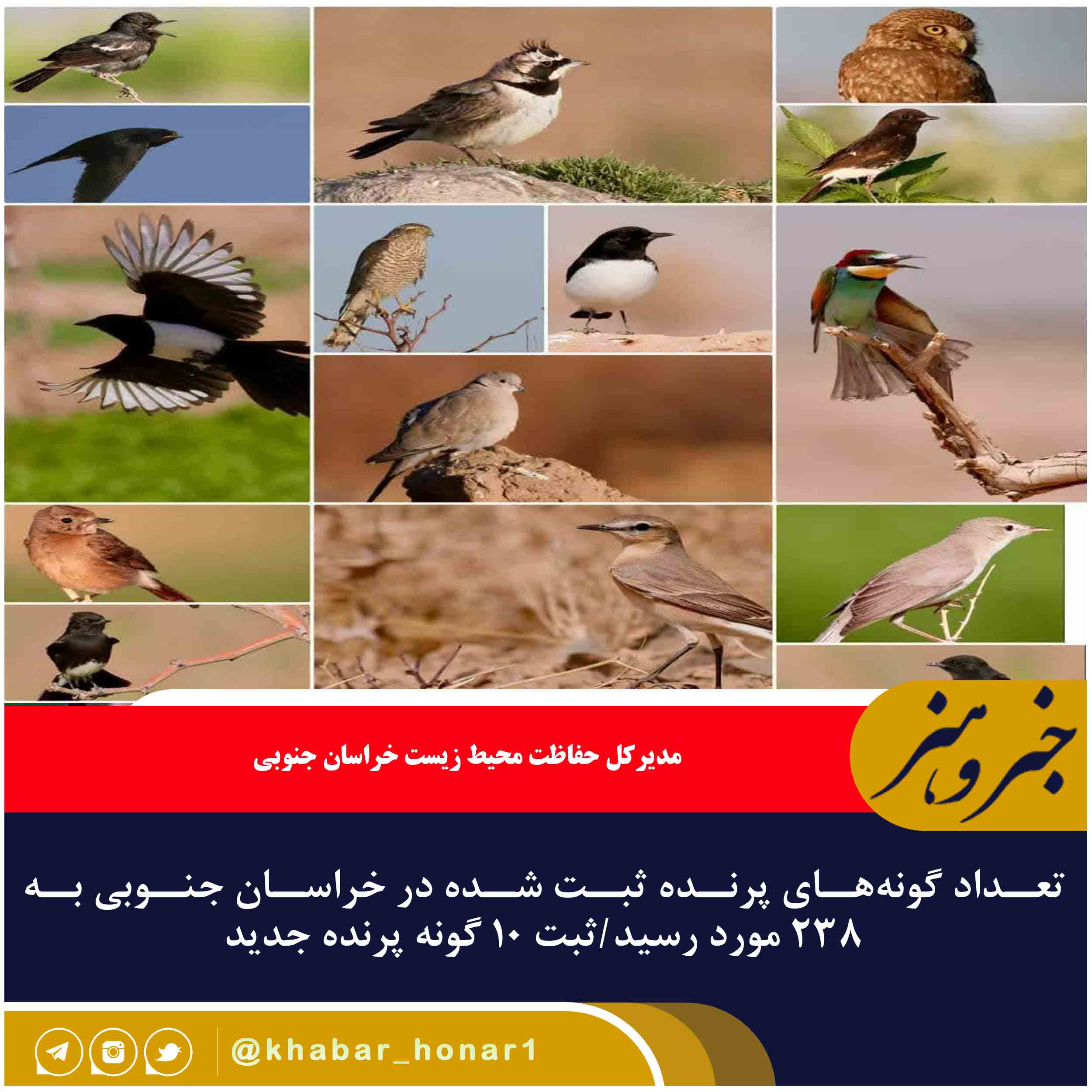 مدیرکل حفاظت محیط زیست خراسان جنوبی بیان کرد: خوشبختانه در سالی که گذشت نیز با ثبت ۱۰ گونه جدید تعداد گونههای شناسایی شده پرندگان استان از ۲۲۸ به ۲۳۸ گونه رسید.