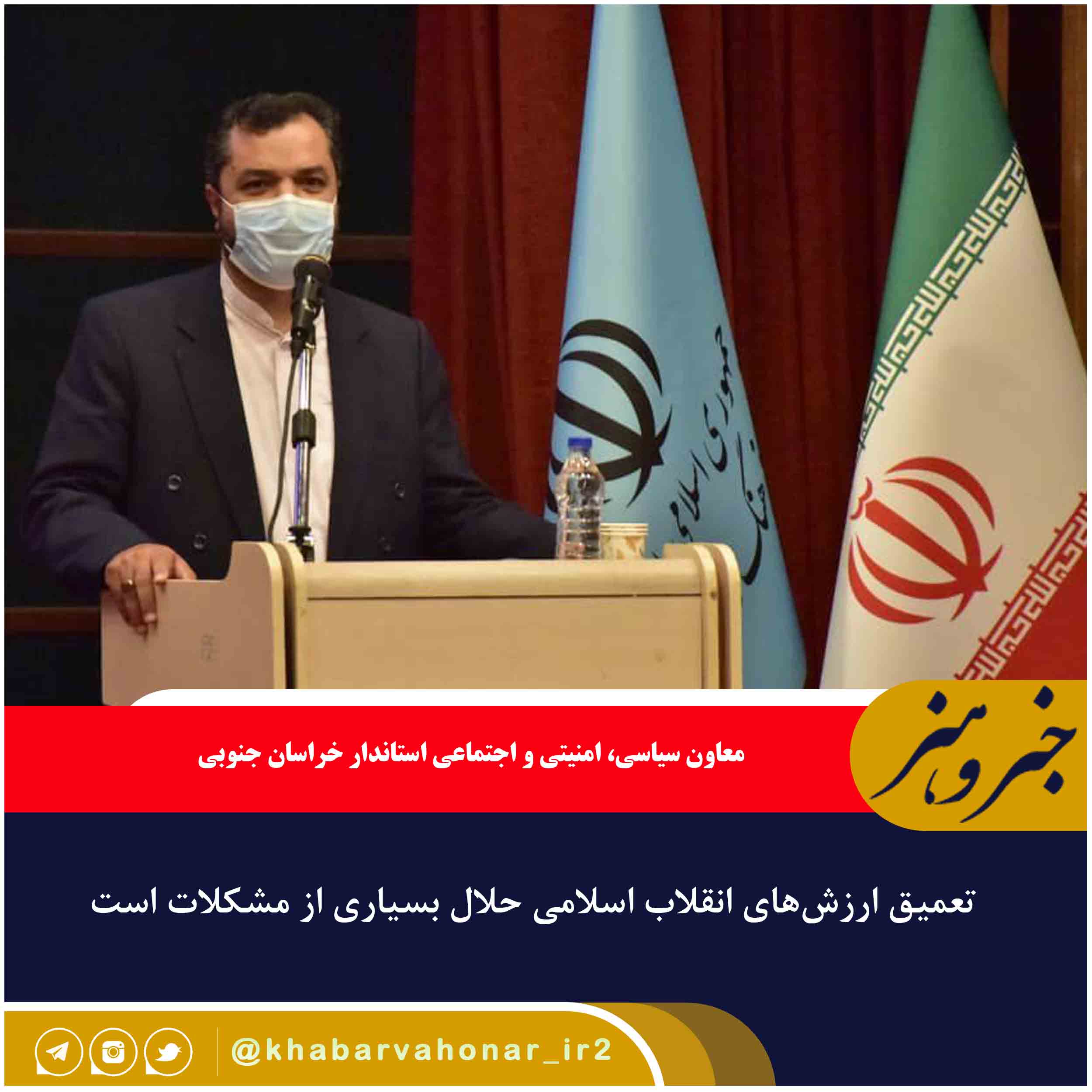 معاون سیاسی، امنیتی و اجتماعی استاندار خراسان جنوبی گفت: تعمیق و نشر ارزشهای انقلاب اسلامی بر پایه مکتب امامین انقلاب و آموزههای دینی حلال بسیاری از مشکلات است که توجه ویژه به آن از متولیان فرهنگی انتظار میرود.
