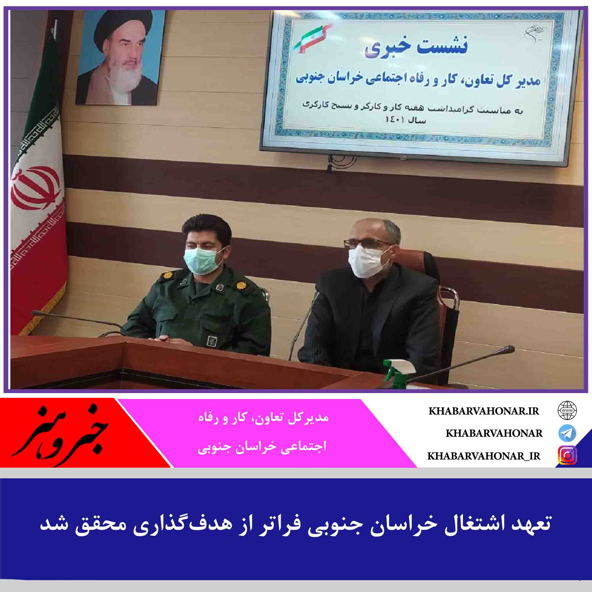 مدیرکل تعاون، کار و رفاه اجتماعی خراسان جنوبی گفت: براساس ثبت اطلاعات اشتغال ایجاد شده توسط دستگاههای اجرایی در سامانه رصد ملی، بیش از ۱۱۱ درصد تعهد استان در سال ۱۴۰۰ محقق شده است.
