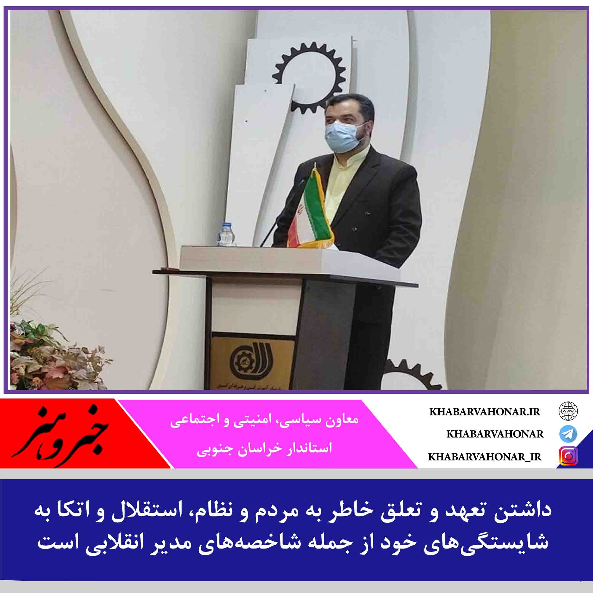 معاون سیاسی، امنیتی و اجتماعی استاندار خراسان جنوبی گفت: داشتن تعهد و تعلق خاطر به مردم و نظام، استقلال و اتکا به شایستگیهای خود از جمله شاخصههای مدیر انقلابی است.