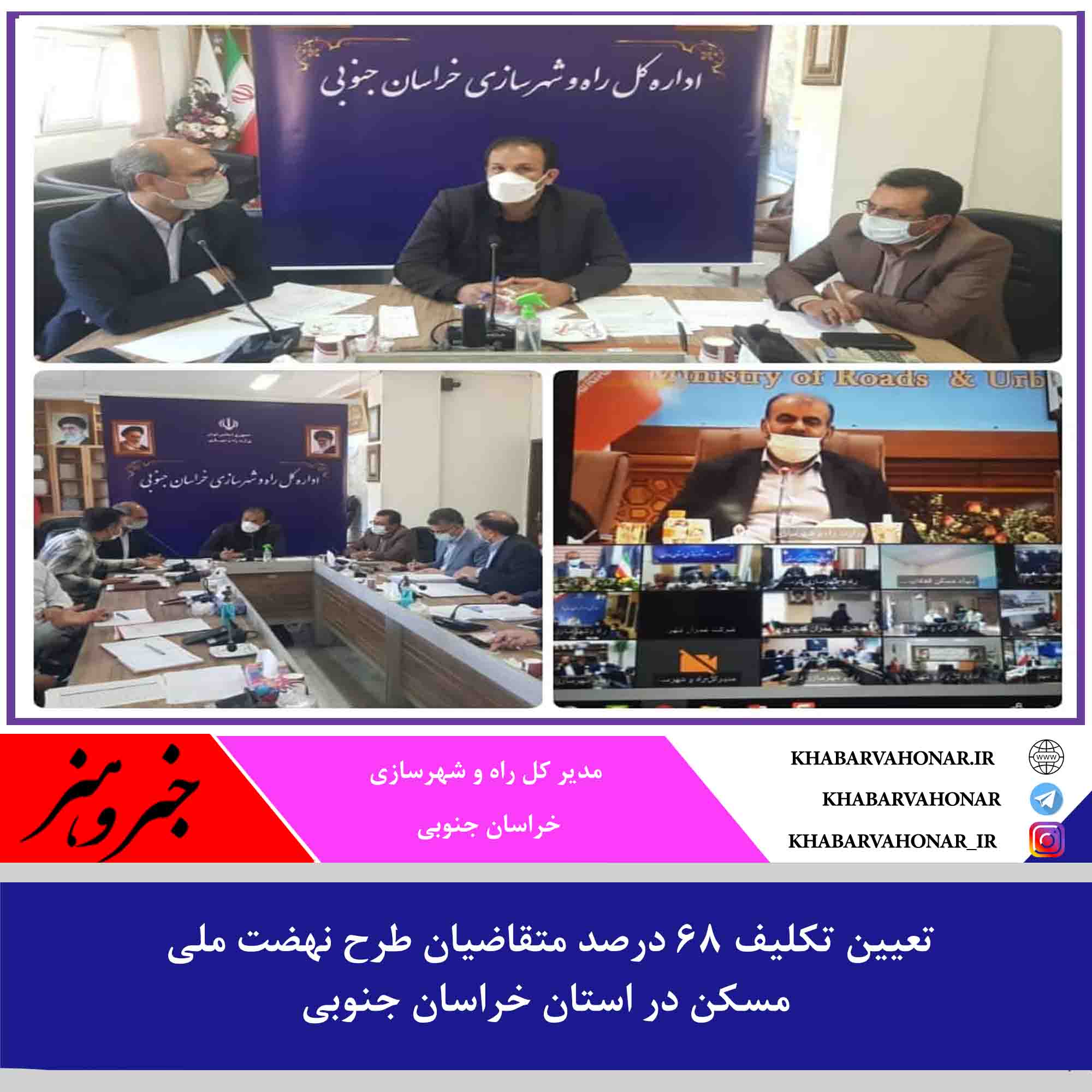 ?براساس اعلام معاونت مسکن و ساختمان وزارت راه و شهرسازی دراین جلسه تعداد ۷۲۵۸۹ نفر در استان خراسان جنوبی ثبت نام نموده اند که ۴۳۵۵۳ نفر در بررسی اولیه (شرایط سه گانه :مالکیت ،فرم ج و تسهیلات مسکن ) حائز شرایط شناخته شده اند که براین اساس حدود ۶۸درصد متقاضیان طرح نهضت ملی مسکن در استان خراسان جنوبی تعیین تکلیف شده اند.
