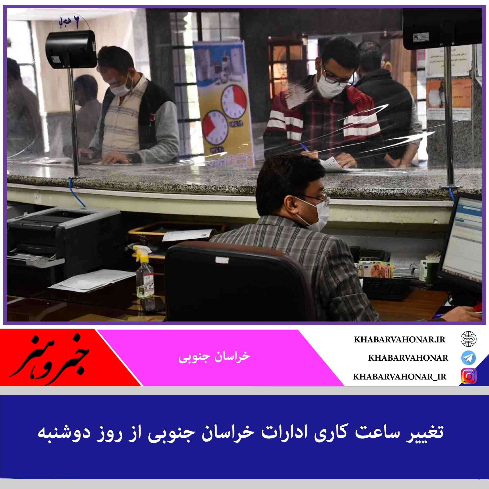 بنابر اعلام استانداری خراسان جنوبی ساعت کاری دستگاههای اجرایی، نهادها و بانکهای استان از روز دوشنبه (۱۷ خرداد) ساعت ۶:۳۰ تا ۱۳ است.