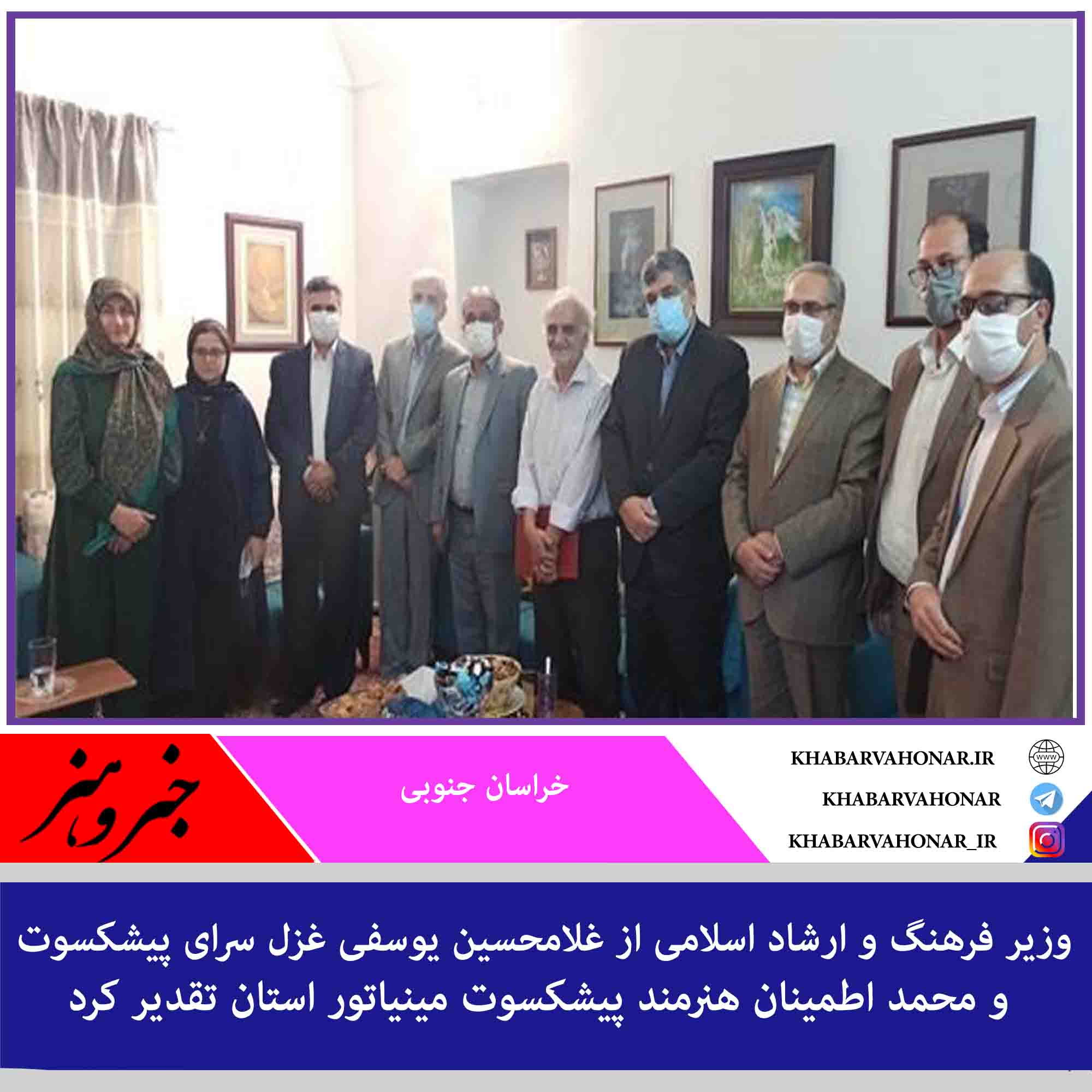 وزیر فرهنگ و ارشاد اسلامی از غلامحسین یوسفی غزل سرای پیشکسوت و محمد اطمینان هنرمند پیشکسوت مینیاتور استان تقدیر کرد.