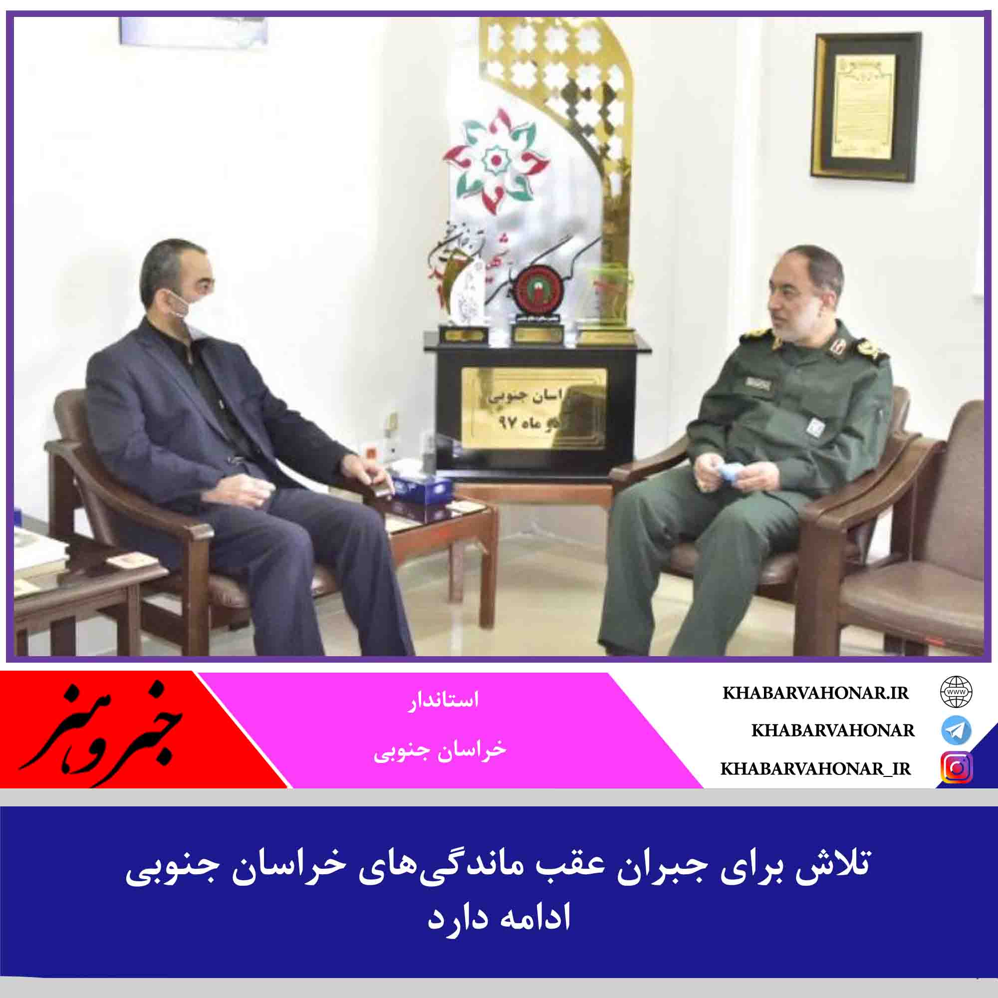استاندار خراسان جنوبی با فرمانده جدید سپاه استان دیدار کرد و گفت: تلاش ما این است که با پیگیری مسائل و مشکلات و جذب منابع از مرکز بخشی از عقبماندگی استان را جبران کنیم.