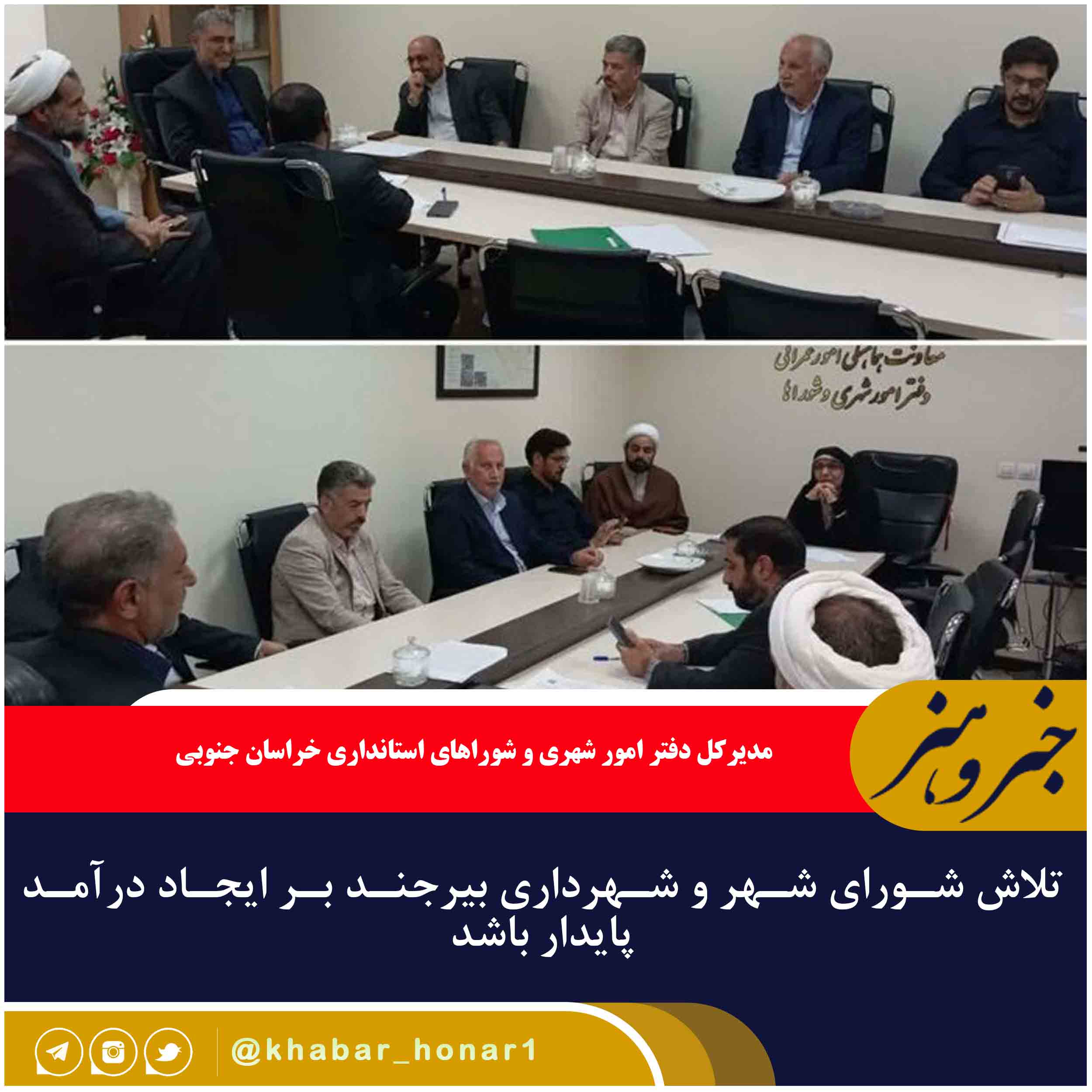 مدیرکل دفتر امور شهری و شوراهای استانداری خراسان جنوبی گفت: تلاشهای شورای شهر بیرجند در کنار شهرداری باید بر ایجاد منابع درآمد پایدار و هدفمند و برنامه محور کردن امور در شهرداری بینجامد.