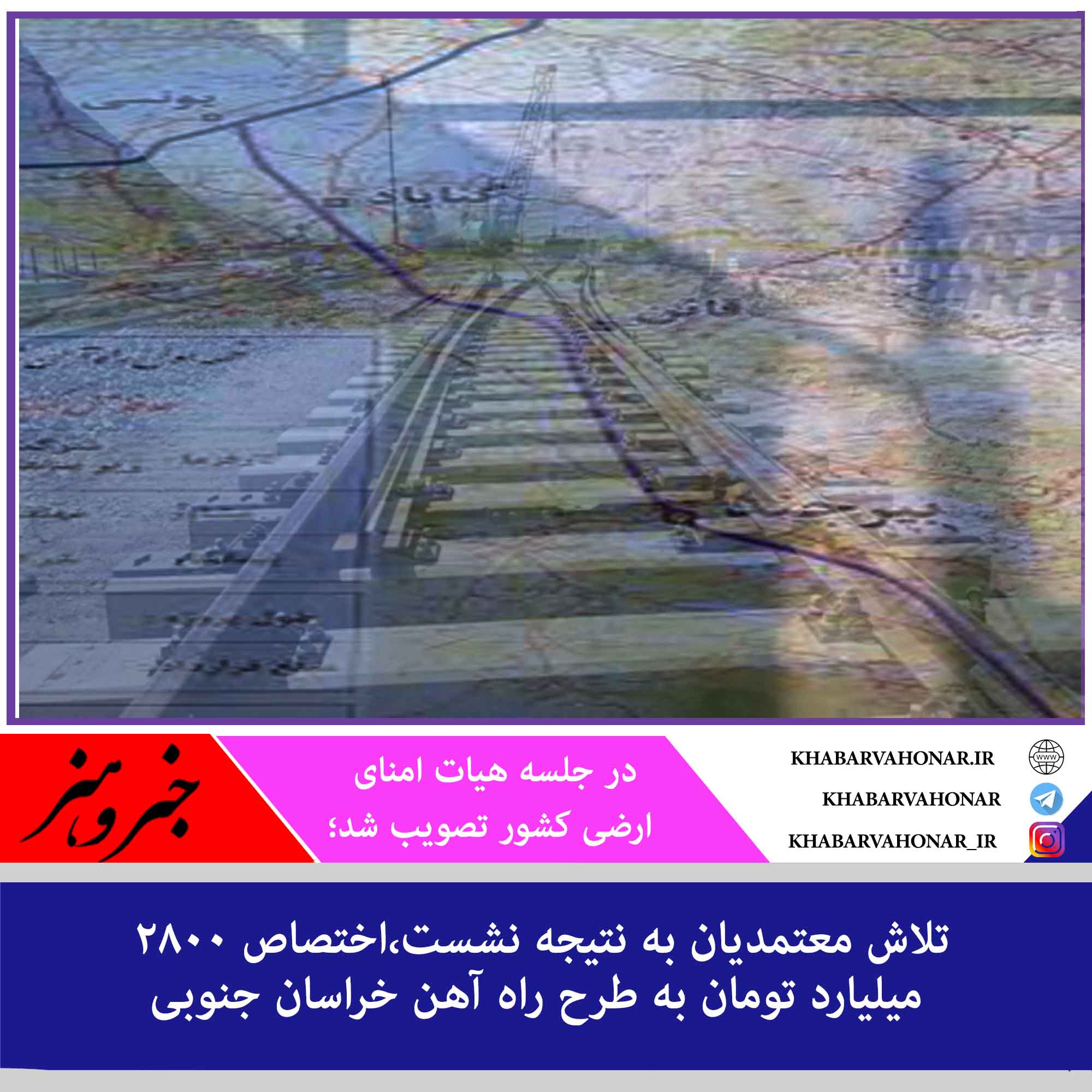 ?استاندار خراسان جنوبی گفت: در جلسه هیات امنای ارضی کشور که امروز عصر به ریاست رئیس جمهور برگزار شد با تخصیص تسهیلات صندوق توسعه ملی به پروژه ریلی استان (بیرجند-قاینات-گناباد) موافقت شد.?استاندار خراسان جنوبی گفت: بر اساس این مدل مالی جدید، کنسرسیومی از ۶ شرکت بزرگ راه سازی تشکیل می شود تا عملیات اجرایی ابرپروژه هایی همچون پروژه ریلی استان خراسان جنوبی با سرعت بیشتری انجام شود.