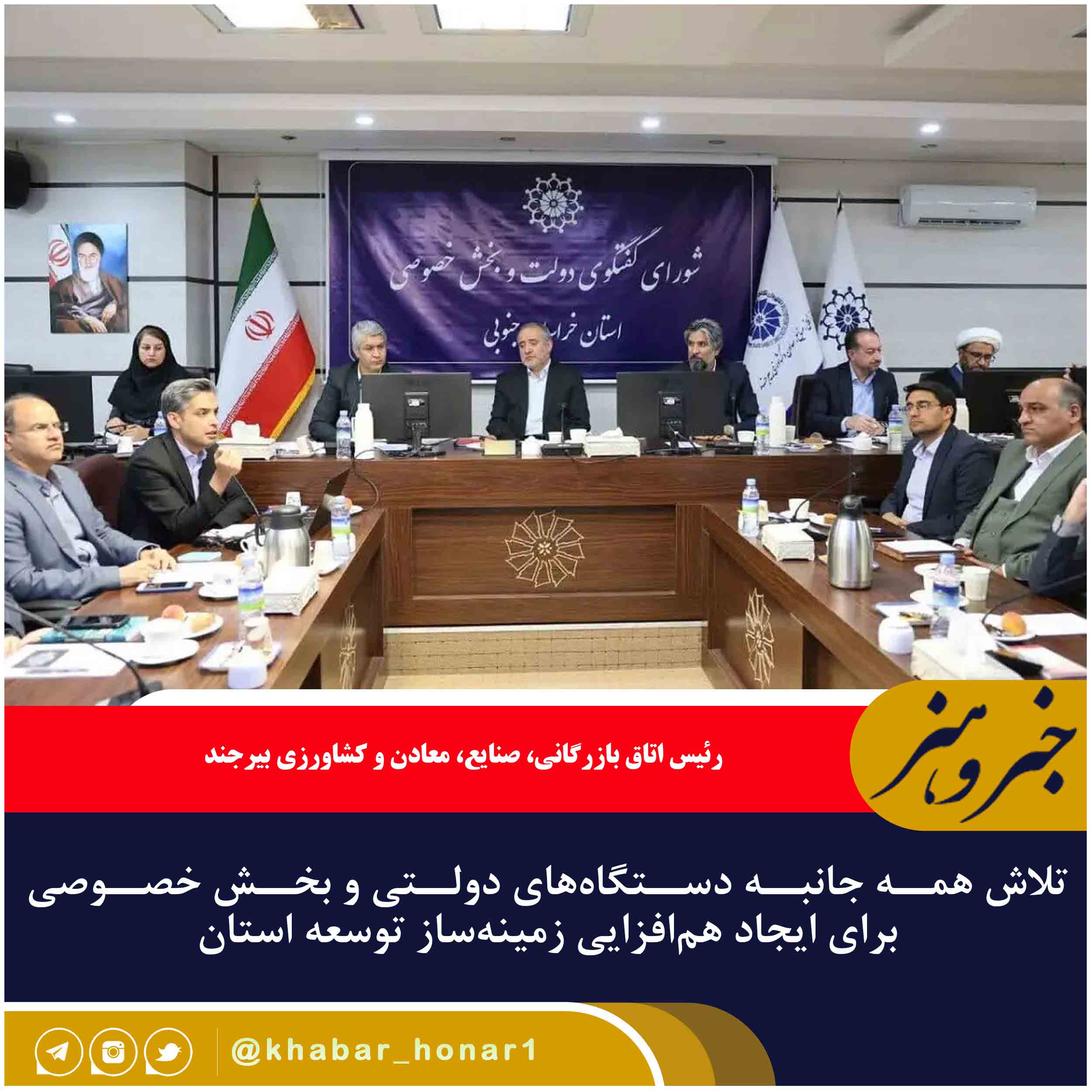 علیرضا خامه در جلسه شورای گفت و گوی دولت و بخش خصوصی خراسان جنوبی با قدردانی از تلاشهای استاندار و مدیران استان در جذب اعتبارات و پیگیری امور افزود: تلاش همه جانبه دستگاههای دولتی و بخش خصوصی برای ایجاد همافزایی و همدلی، زمینهساز تحقق برنامههای توسعهای در استان خواهد بود.