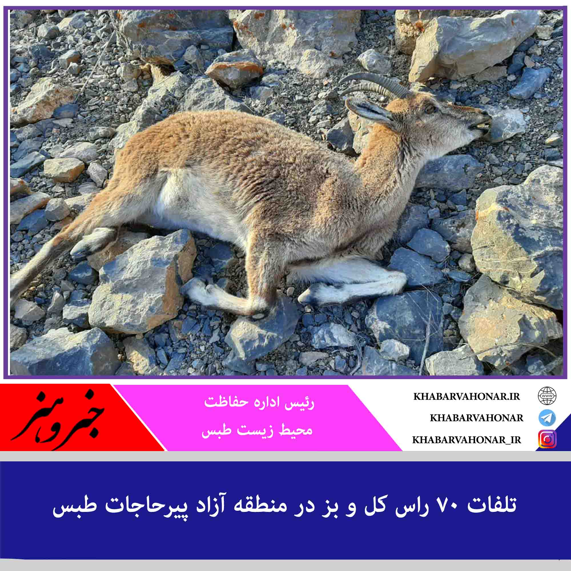 رئیس اداره حفاظت محیط زیست طبس از تلف شدن ۷۰ گونه کل و بز در منطقه آزاد (پیرحاجات) این شهرستان خبر داد.