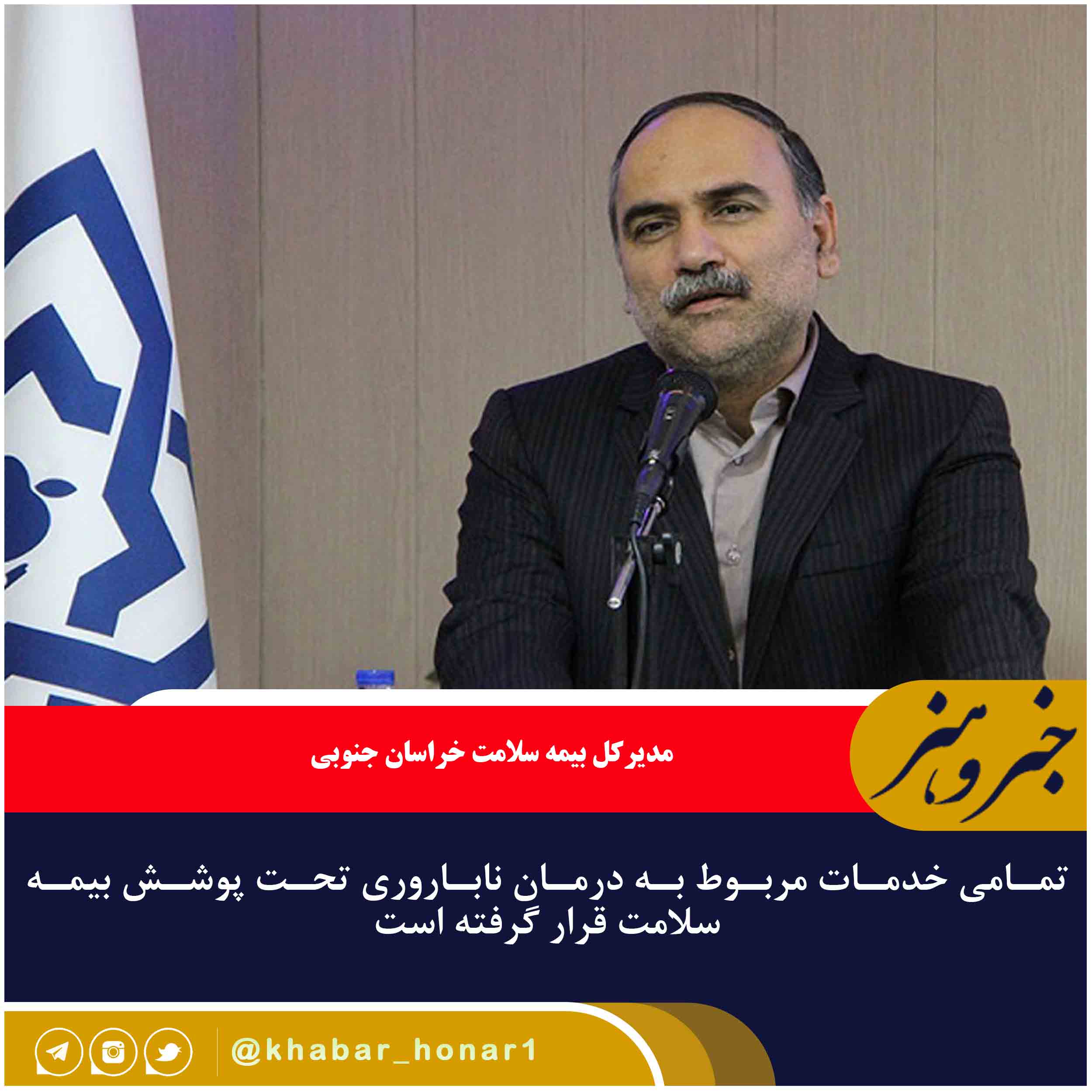 مدیرکل بیمه سلامت خراسان جنوبی با اشاره به پوشش خدمات بیمه سلامت در استان گفت: حدود ۶۰ درصد جمعیت استان تحت پوشش بیمه خدمات درمانی هستند و در دو سال اخیر شرایط برای بیمه همه ایرانیان فراهم شده و هیچ فردی نباید نگران بیمه خود باشد.