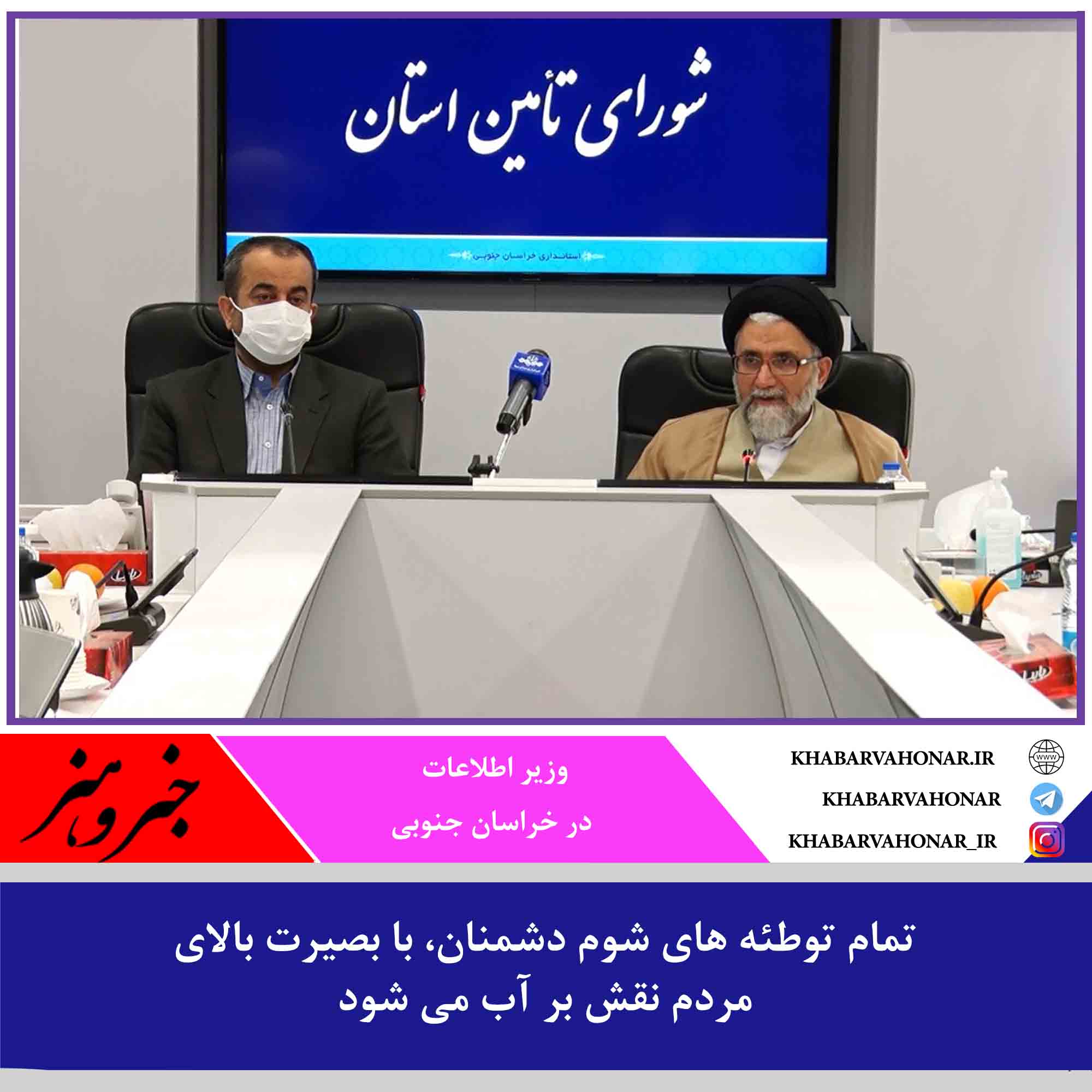 وزیر اطلاعات گفت: تمام توطئه های شوم دشمنان، با بصیرت بالای مردم به مانند فتنه ۸۸ نقش بر آب می شود.