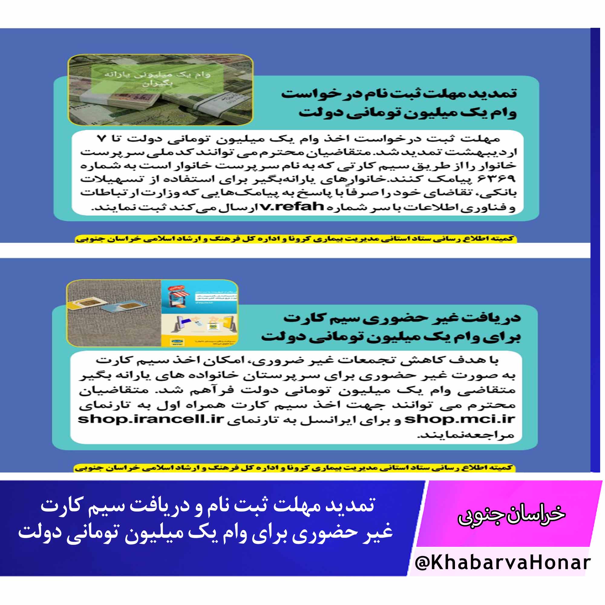 تمدید مهلت ثبت نام و دریافت سیم کارت غیر حضوری برای وام یک میلیون تومانی دولت