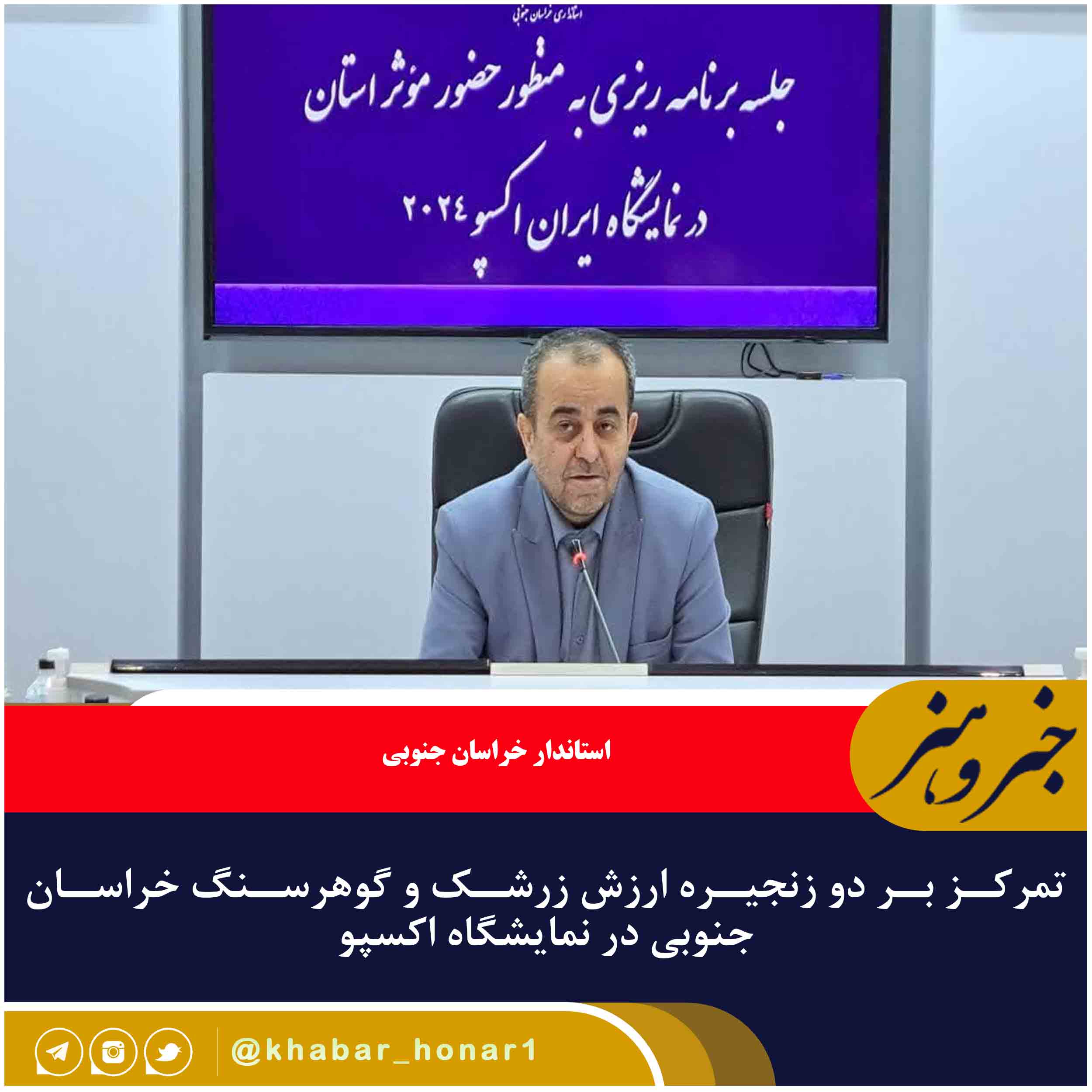 ?استاندار خراسان جنوبی گفت: در نمایشگاه ایران اکسپو ۲۰۲۴ بر زنجیره ارزش افزوده زرشک و گوهرسنگهای استان تمرکز خواهیم داشت.