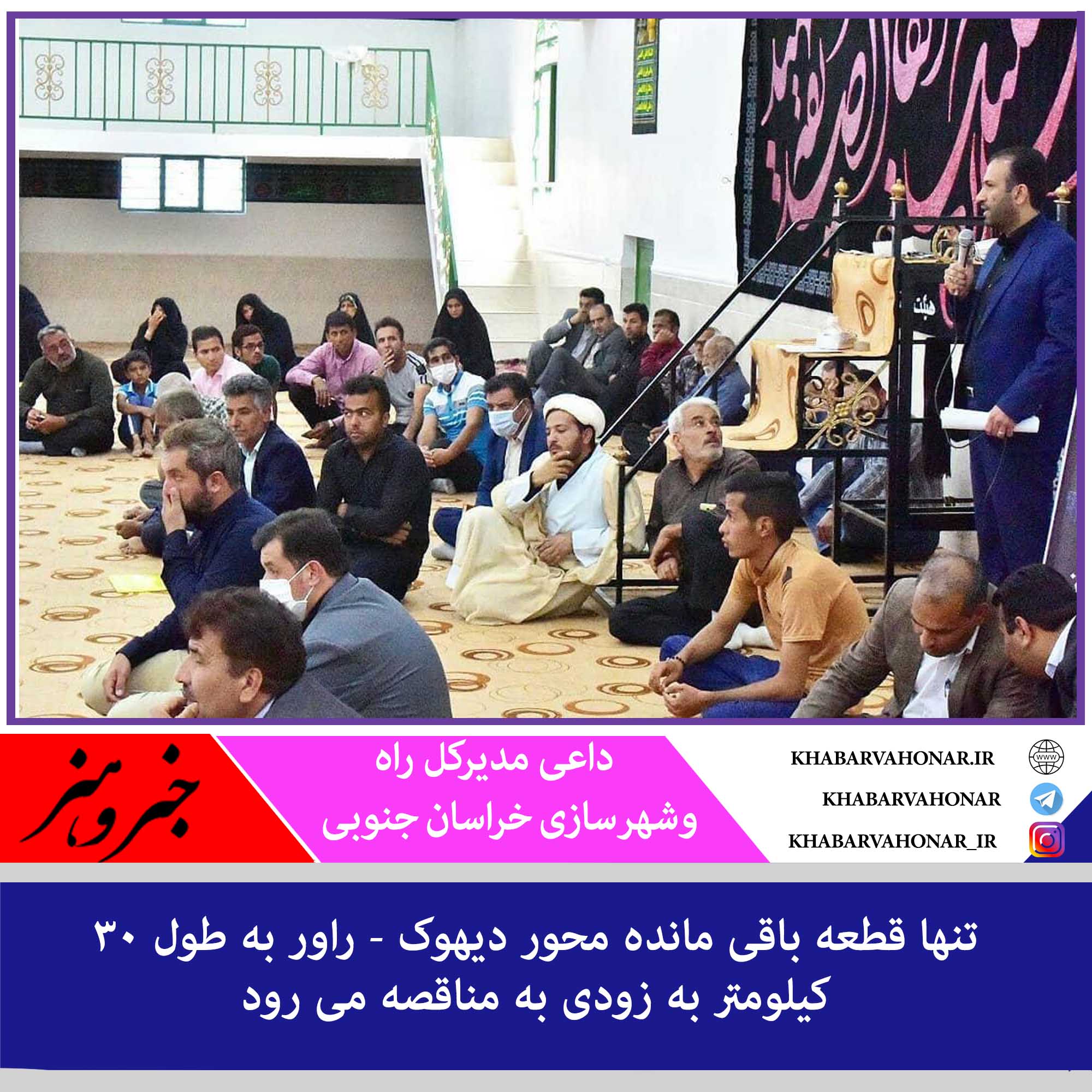 مدیرکل راه وشهرسازی خراسان جنوبی درجمع مردم نایبند پس از بازدید استاندار ازقطعات درحال اجرای محور دیهوک – راور اعلام نمود: