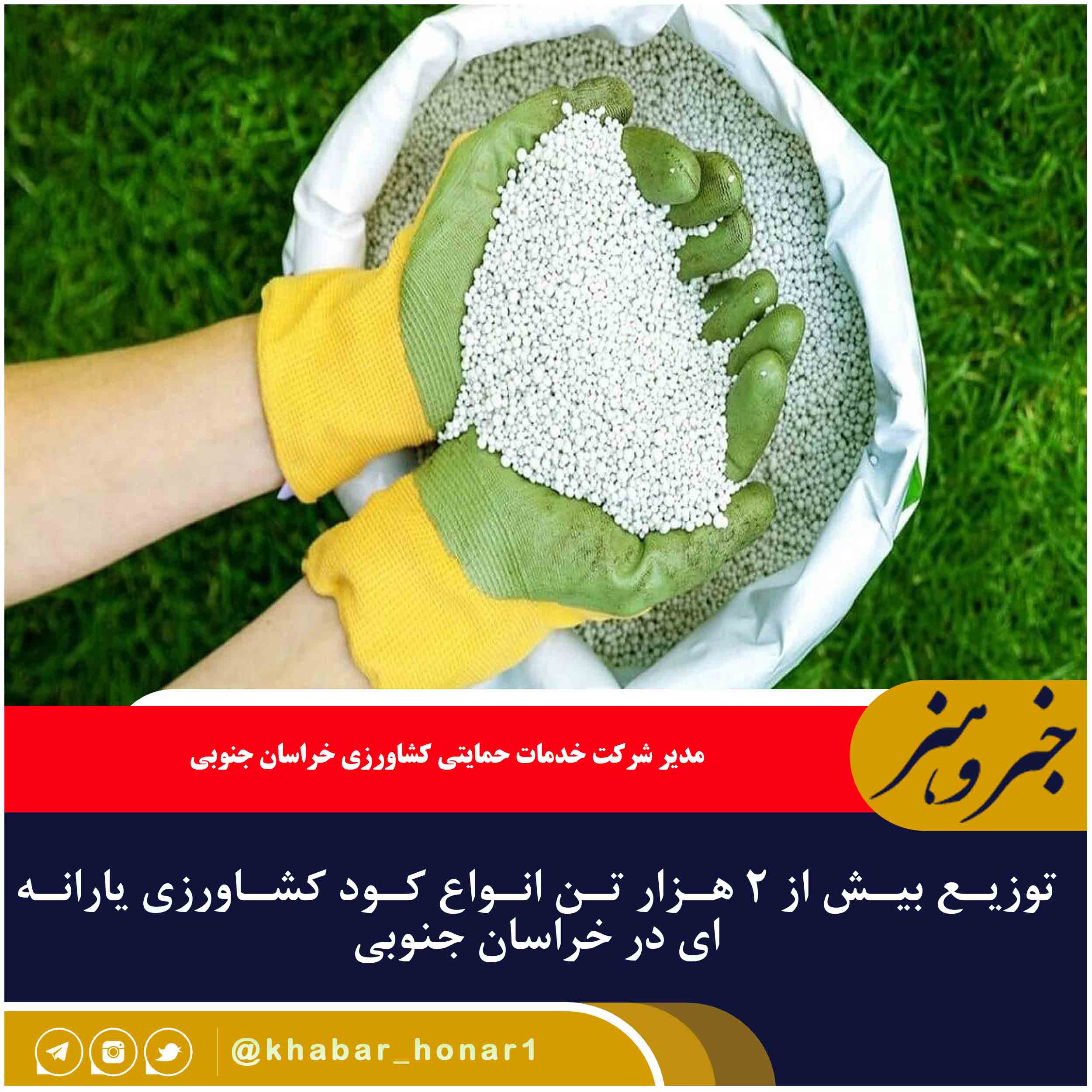 مدیر شرکت خدمات حمایتی کشاورزی خراسان جنوبی گفت: در سه ماه ابتدایی سال جاری بیش از ۲ هزار و ۶۷۴ تن انواع کود کشاورزی یارانهای از طریق کارگزاران شرکت در استان توزیع شده است.