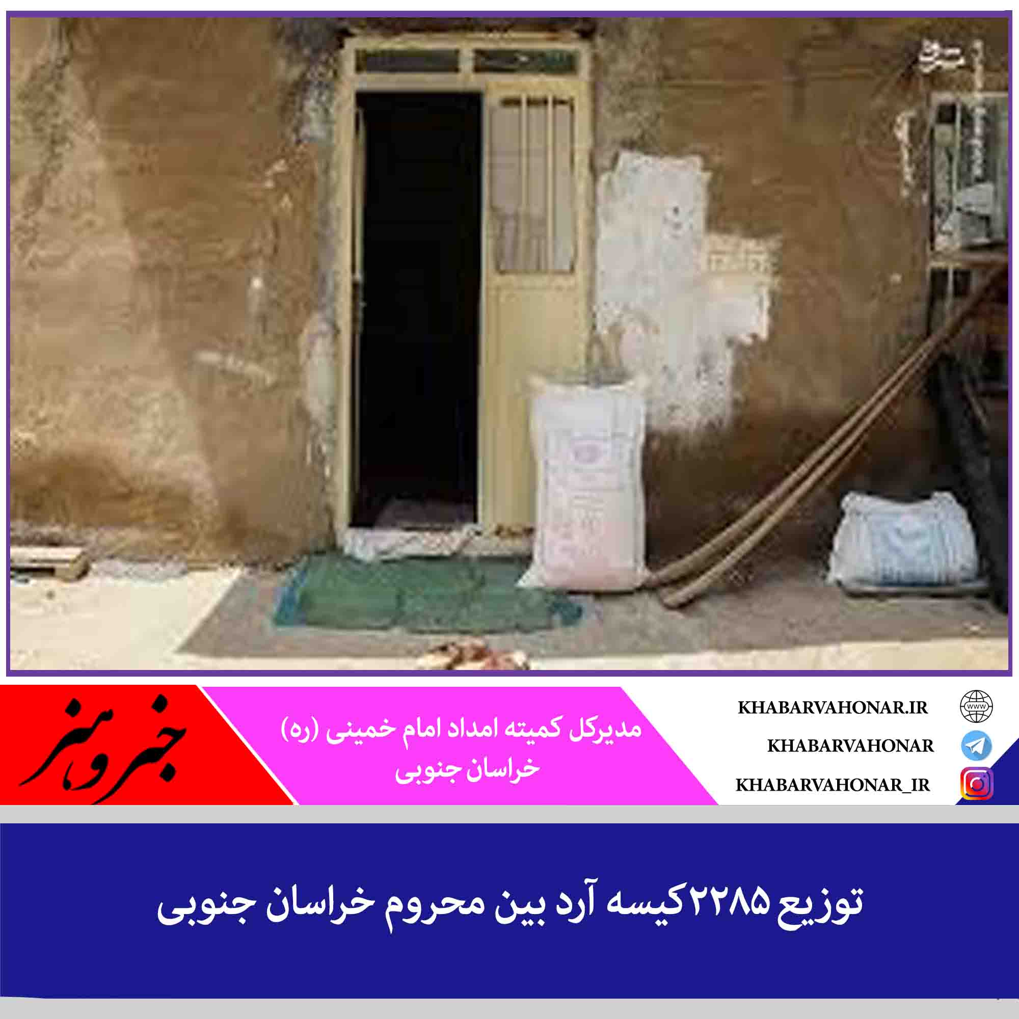 ۲هزار و ۲۸۵کیسه آرد بین مددجویان مناطق محروم خراسان جنوبی توزیع شد.
