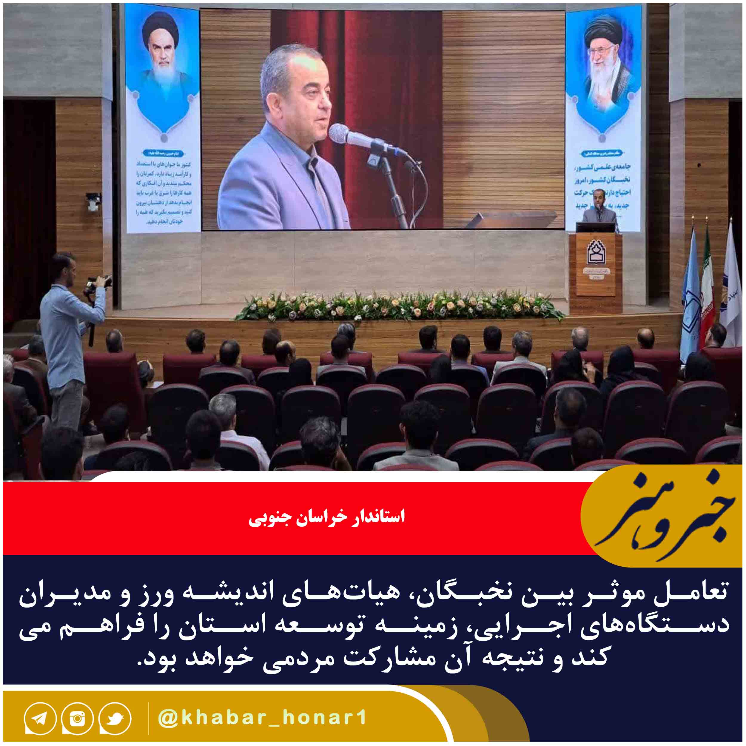 استاندار خراسان جنوبی گفت: تعامل موثر بین نخبگان، هیات‌های اندیشه ورز و مدیران دستگاه‌های اجرایی، زمینه توسعه استان را فراهم می‌کند و نتیجه آن مشارکت مردمی خواهد بود.
