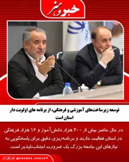 توسعه زیرساخت‌های آموزشی و فرهنگی، از برنامه های اولویت‌ دار استان است