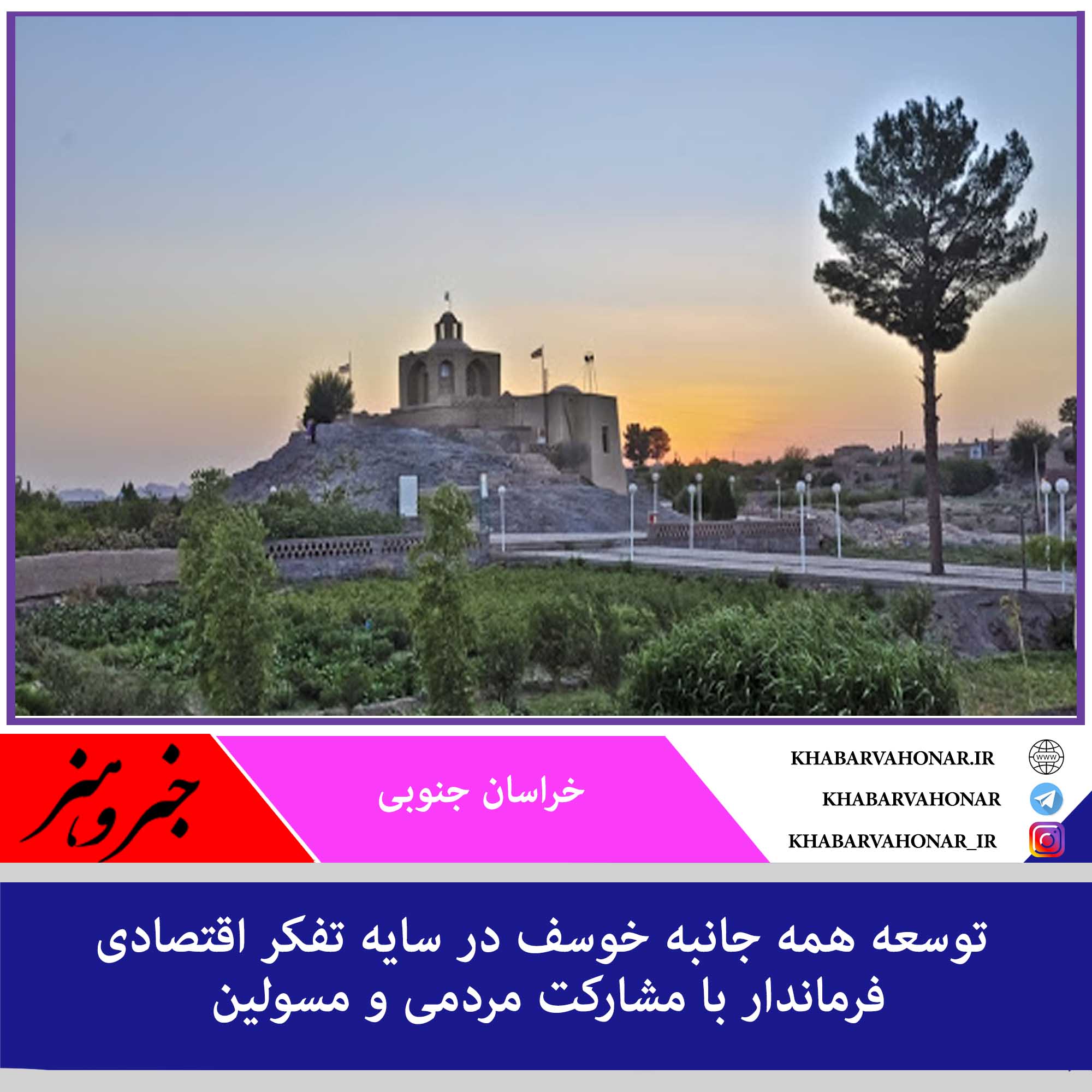 شهرستان خوسف در ۳۶ کیلومتری مرکز استان خراسان جنوبی نزدیکترین شهرستان به مرکز استان با داشتن ظرفیت های بسیار زیاد در بخش های کشاورزی و دامداری، معادن ، صنایع دستی ، گردشگری، می باشد . استفاده از این ظرفیت ها به توسعه بیش ار بیش این شهرستان را رقم میزند.