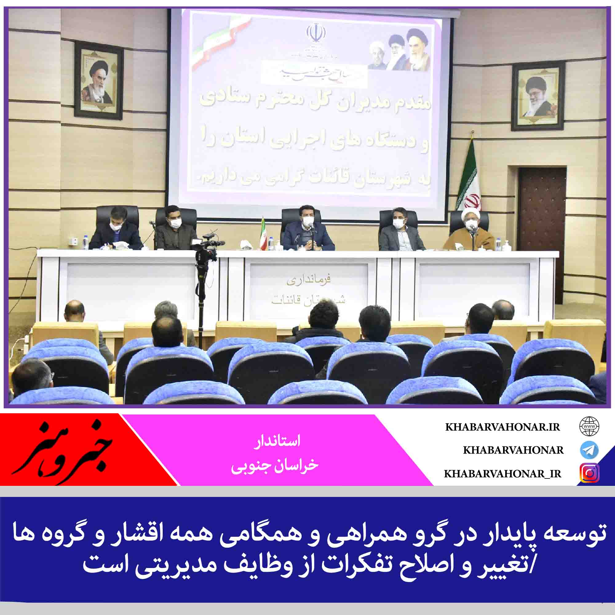 ?وی با اشاره به شعار خراسان جنوبی؛ تدبیر، تلاش، توسعه گفت: ما باید با تدبیر و اندیشه، خطاها را کم کنیم و با تلاش و جدیت برای توسعه پایدار برنامه ریزی کنیم.