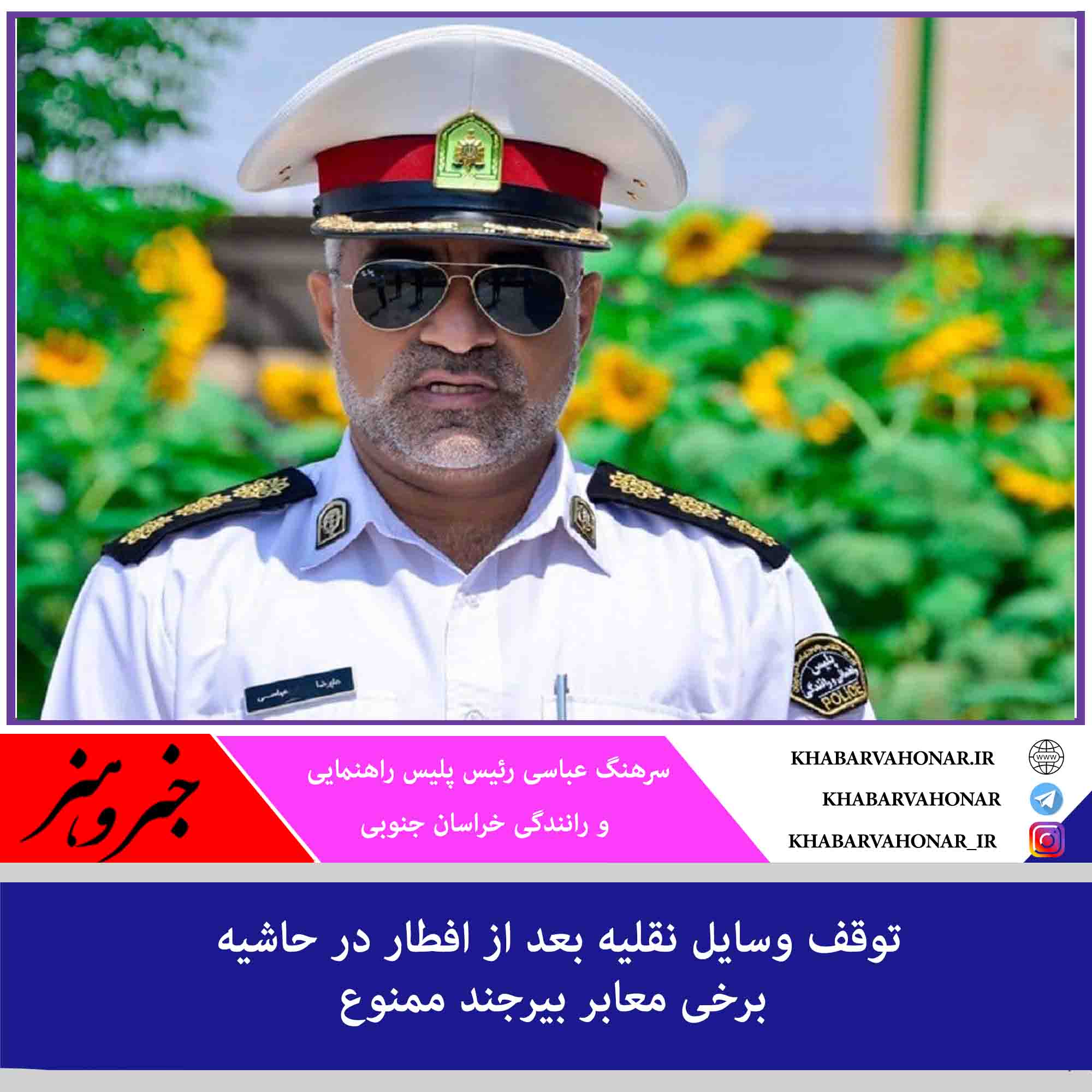 رئیس پلیس راهنمایی و رانندگی خراسان جنوبی از ممنوعیت توقف وسایل نقلیه بعد از افطار در حاشیه برخی معابر بیرجند خبر داد.
