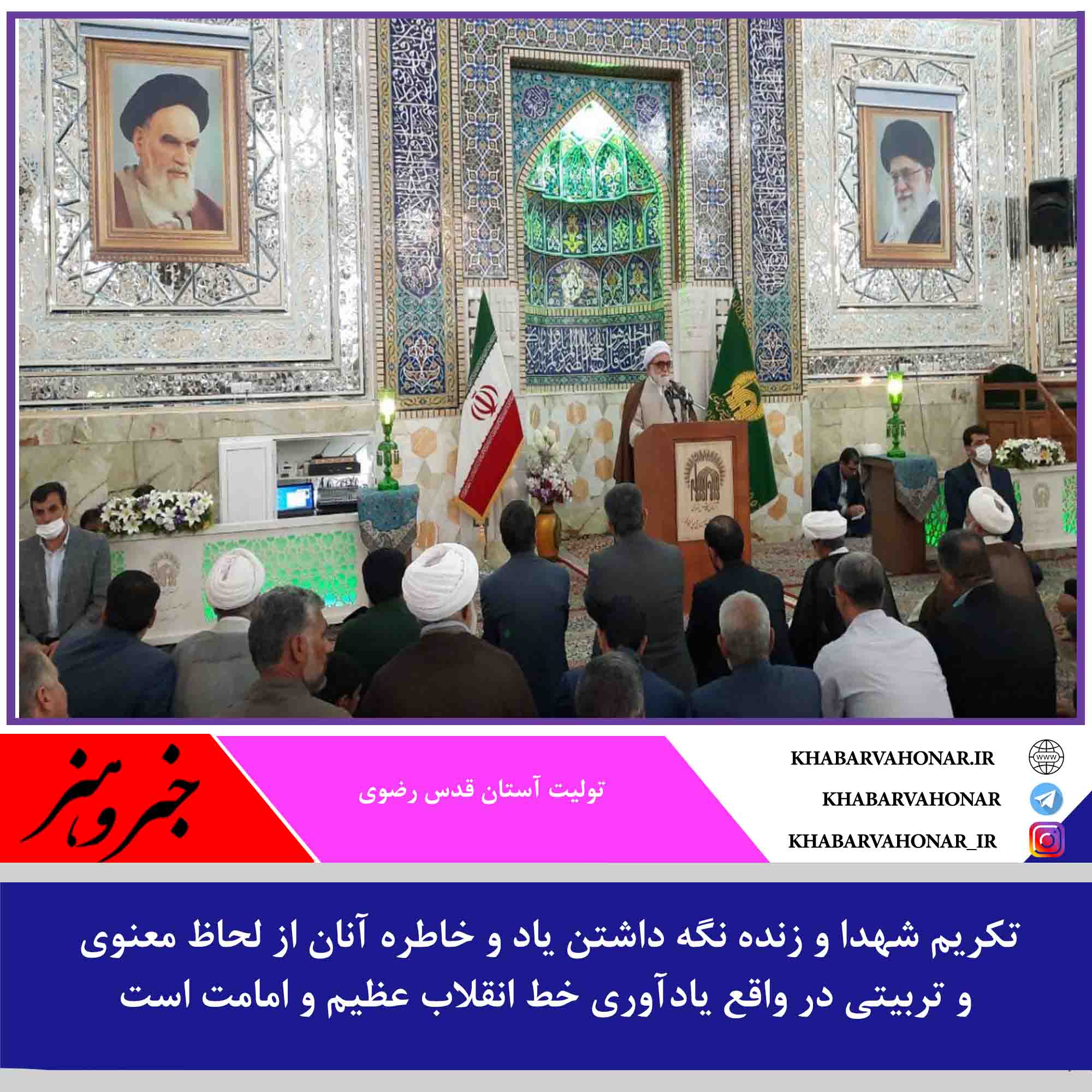 تولیت آستان قدس رضوی گفت: تکریم شهدا و زنده نگه داشتن یاد و خاطره آنان از لحاظ معنوی و تربیتی در واقع یادآوری خط انقلاب عظیم و امامت است.