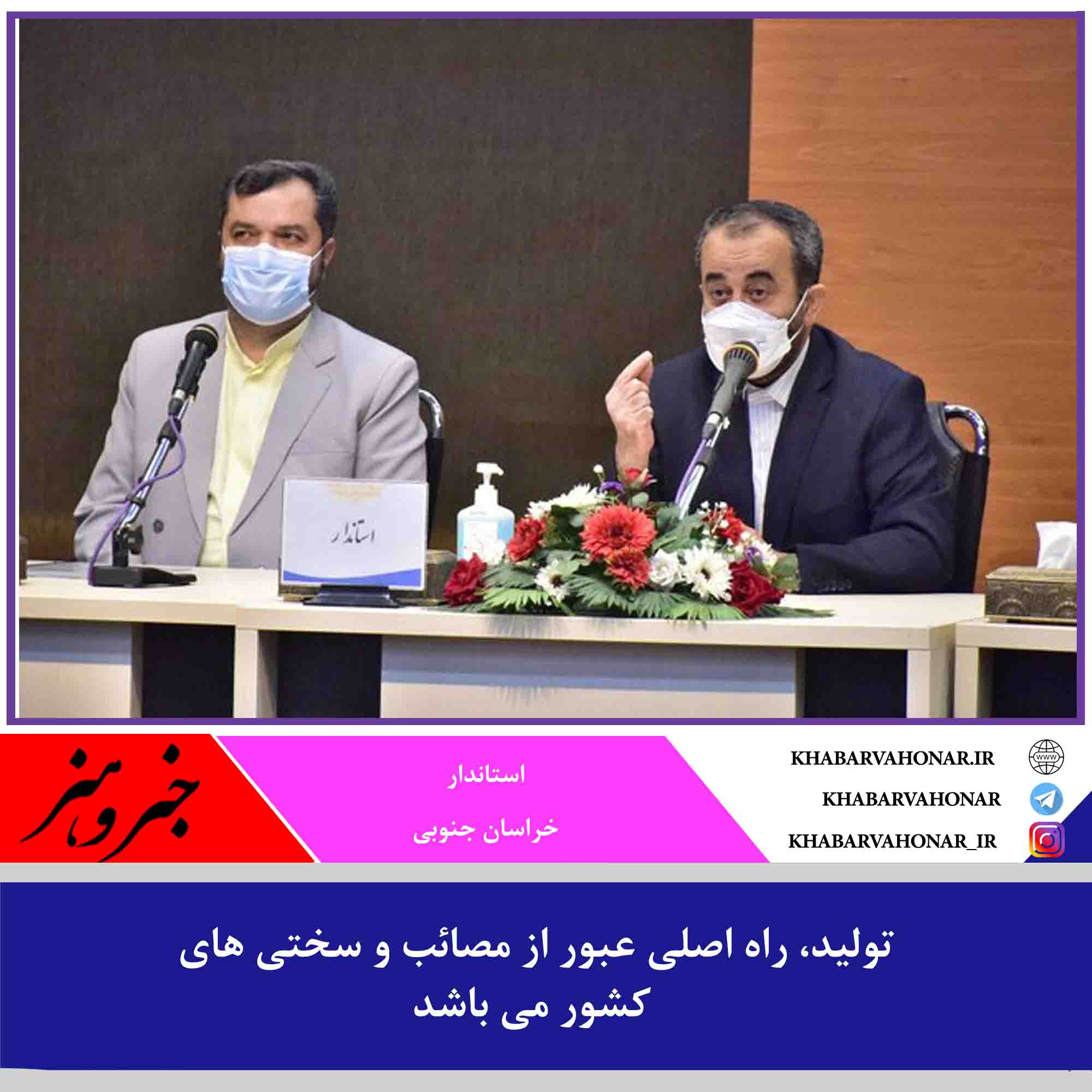 ?استاندار خراسان جنوبی تأکید کرد: تولید، راه اصلی عبور از مصائب و سختی های کشور می باشد.