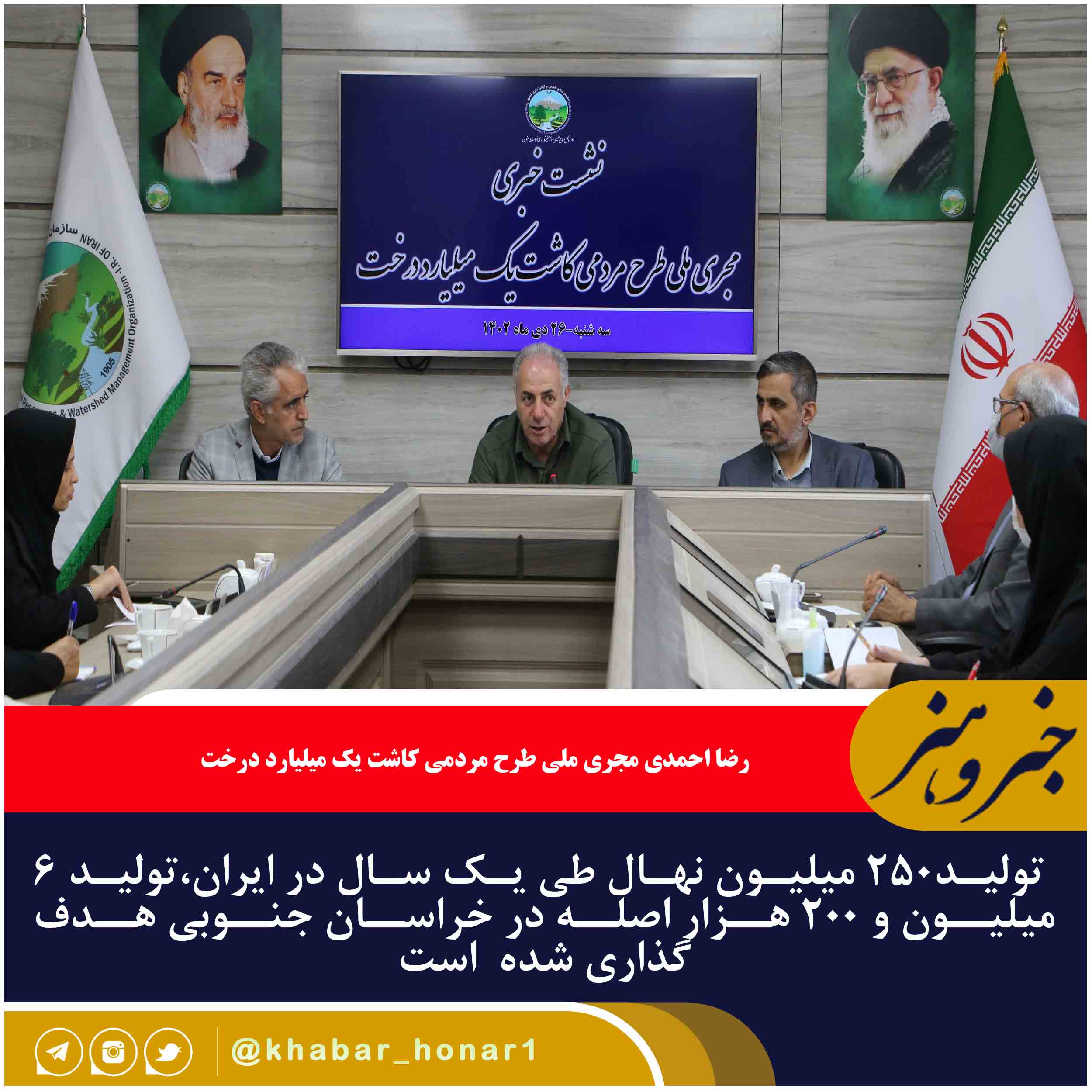 رضا احمدی مجری ملی طرح مردمی کاشت یک میلیارد درخت گفت: امسال در ۳۰۹ نهالستان بخش خصوصی و ۲۰۲ نهالستان بخش دولتی، ۲۵۰ میلیون اصله نهال تولید شده که ۶۲ میلیون اصله نهال مثمر است.