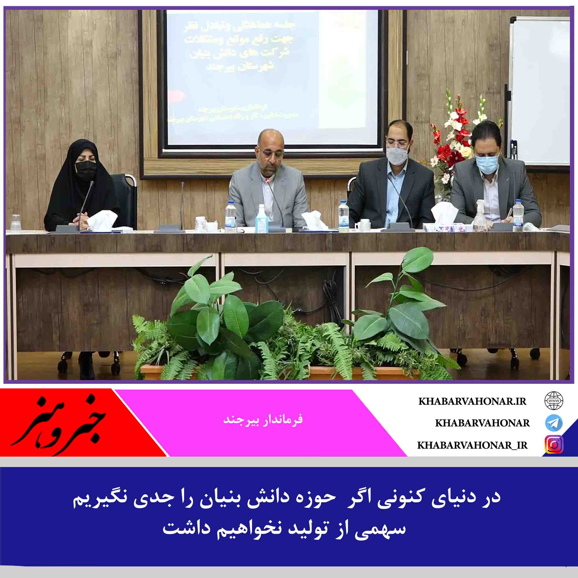 فرماندار بیرجند گفت:در دنیای کنونی اگر حوزه دانش بنیان را جدی نگیریم سهمی از تولید نخواهیم داشت.