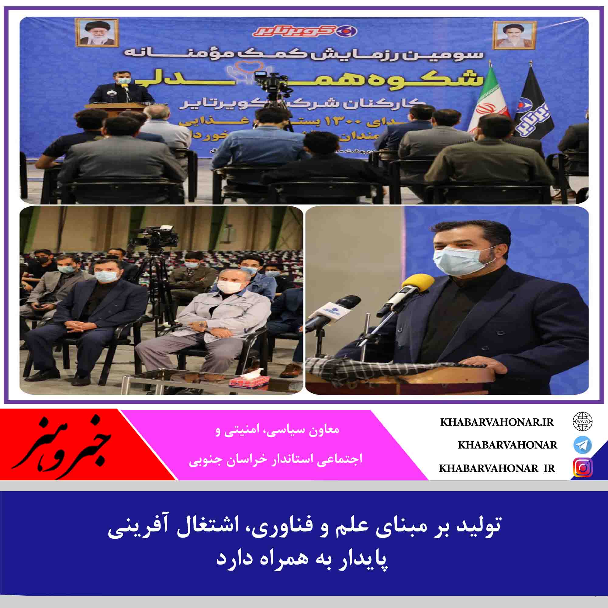 ?معاون سیاسی، امنیتی و اجتماعی استاندار خراسان جنوبی با بیان اینکه کویر تایر در کنار موفقیت های فراوان در عرصه تولید در حوزه کارگری نیز معوقه ای ندارد، گفت: تولید بر مبنای علم و فناوری، اشتغال آفرینی پایدار را در واحد های تولیدی به همراه دارد.