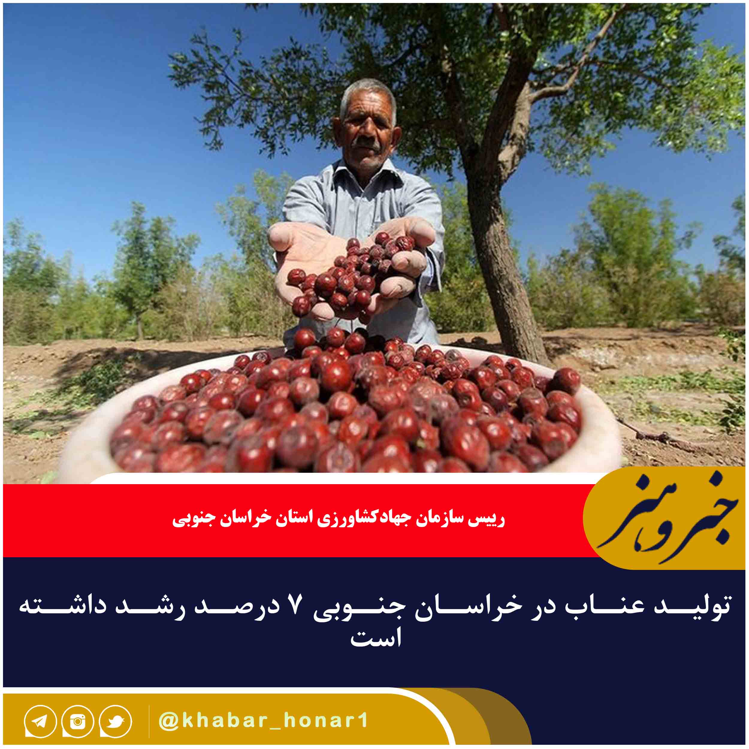رییس سازمان جهادکشاورزی استان خراسان جنوبی گفت: تولید عناب در خراسان جنوبی ۷ درصد افزایش یافت.