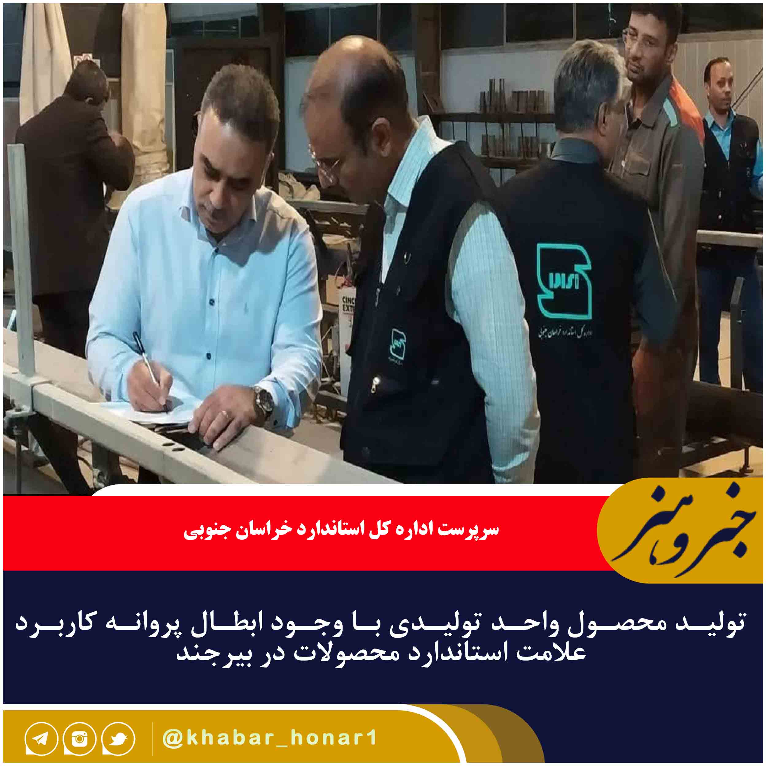 دستورانی سرپرست اداره کل استاندارد خراسان جنوبی گفت: پروانه کاربرد علامت استاندارد محصولات این واحد تولیدی ابطال و مجاز به تولید نبود که با آگاهی از این موضوع مبادرت به تولید در شیفت شب (۱۲ شب تا ۷ صبح) میکرد اما با اطلاع رسانی مردمی و هوشیاری کارشناسان این اداره کل در زمان تولید این تخلف برملا شد.