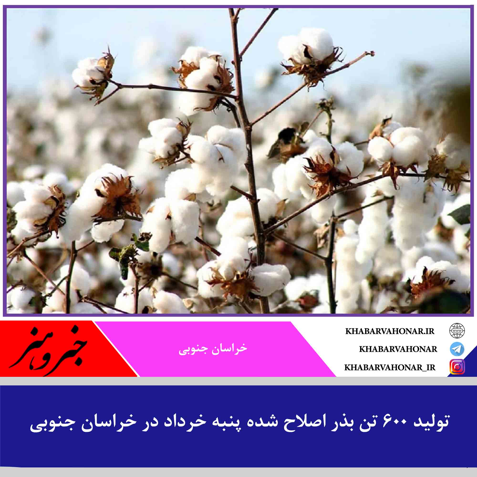 مدیر امور زراعت سازمان جهاد کشاورزی خراسان جنوبی از تولید ۶۰۰ تن بذر اصلاح شده پنبه رقم خرداد در استان خبر داد.