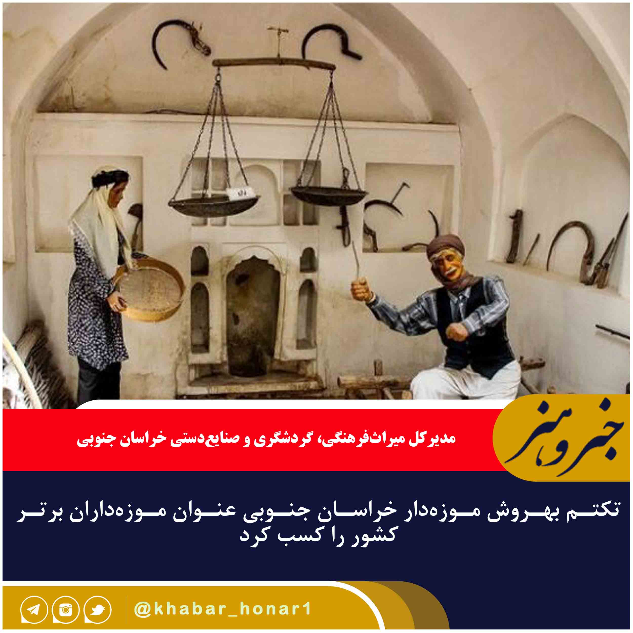 مدیرکل میراثفرهنگی، گردشگری و صنایعدستی خراسان جنوبی گفت: به مناسبت گرامی داشت روز جهانی موزه و میراث فرهنگی، از موزه دار باغ و عمارت جهانی اکبریه، بهعنوان یکی از موزهداران برتر کشور تجلیل شد.