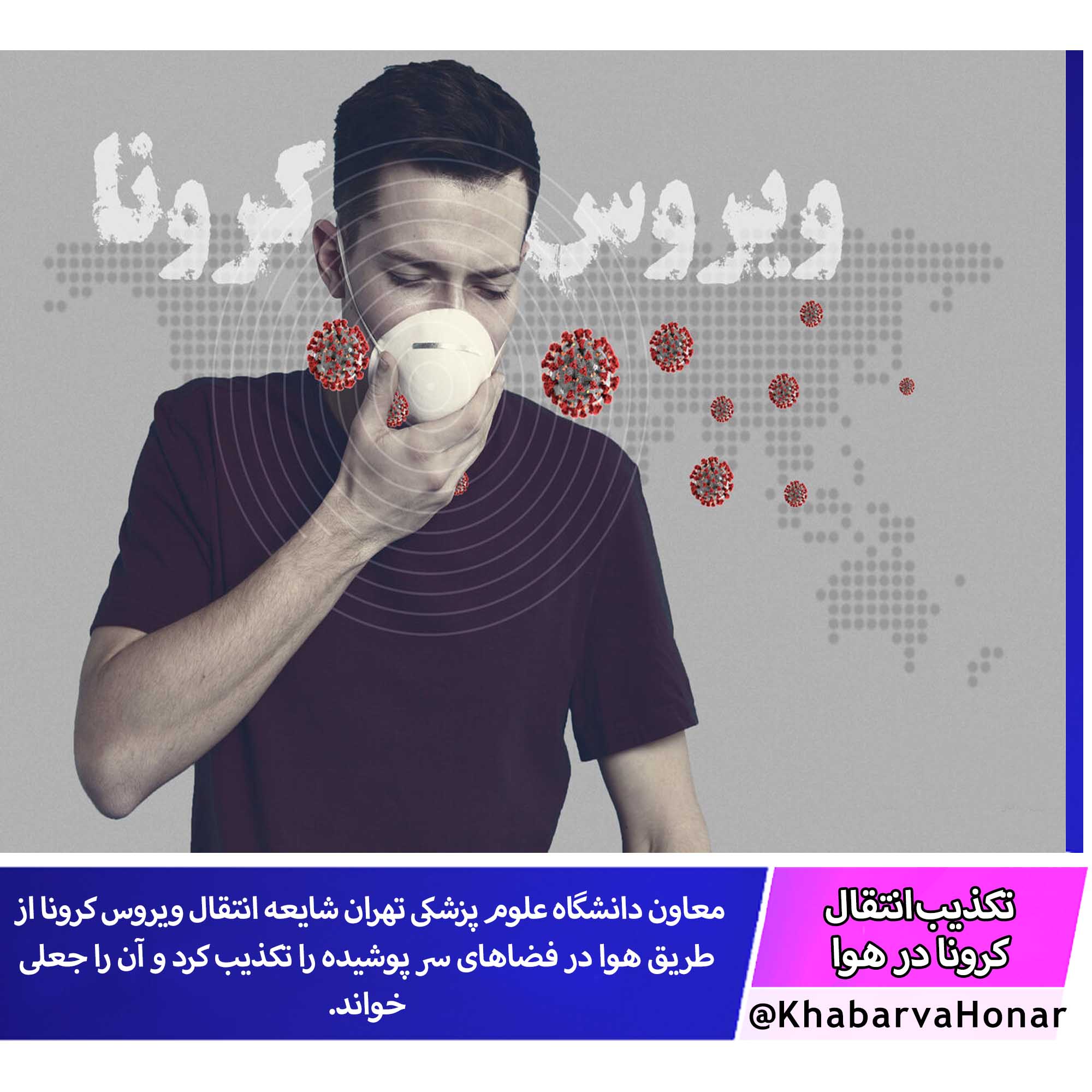 ?معاون دانشگاه علوم پزشکی تهران شایعه انتقال ویروس کرونا از طریق هوا در فضاهای سر پوشیده را تکذیب کرد و آن را جعلی خواند.