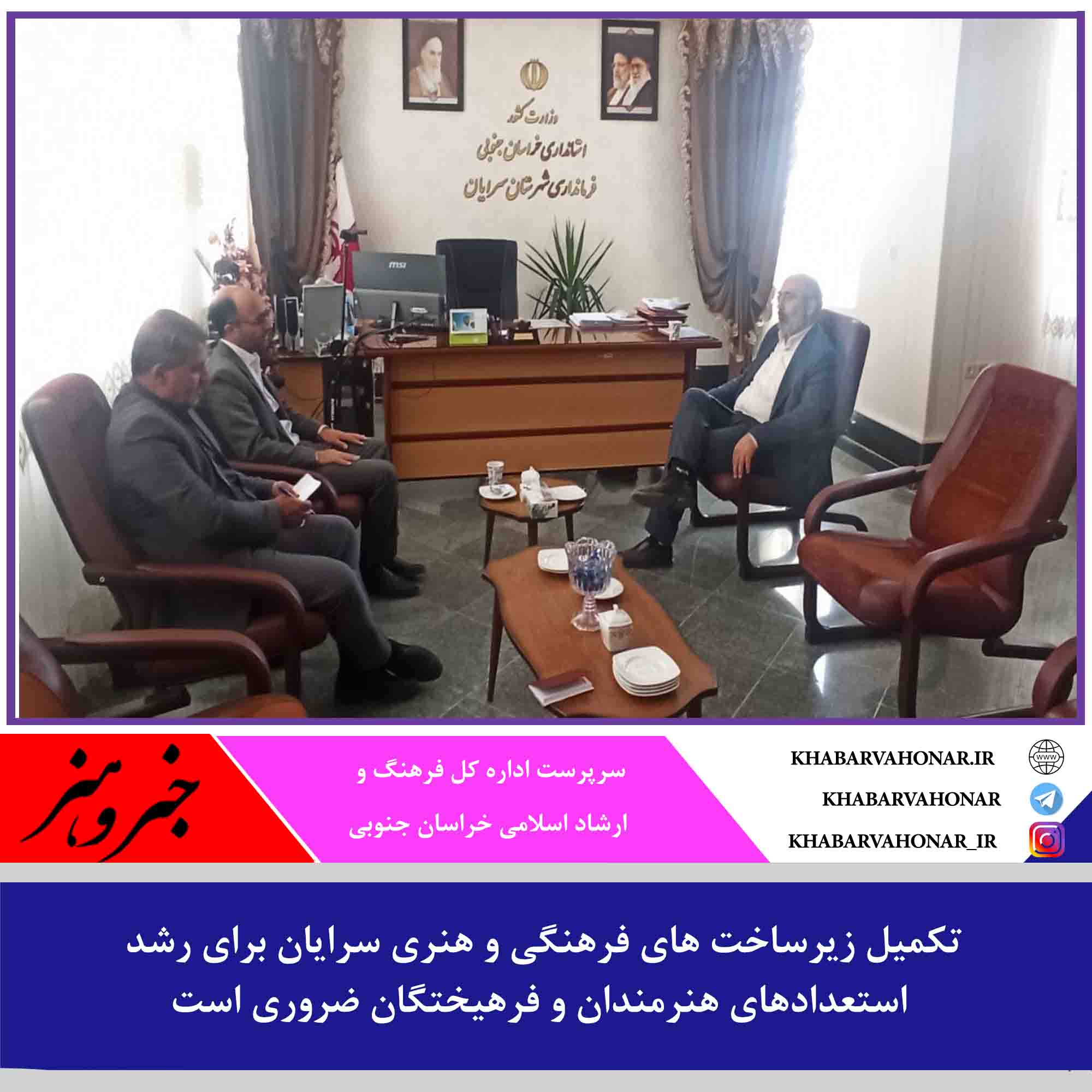 سرپرست اداره کل فرهنگ و ارشاد اسلامی خراسان جنوبی گفت: تکمیل زیرساخت های فرهنگی و هنری شهرستان سرایان برای اجرای برنامه های متنوع و رشد استعداد های هنرمندان و فرهیختگان این شهرستان ضروری است.