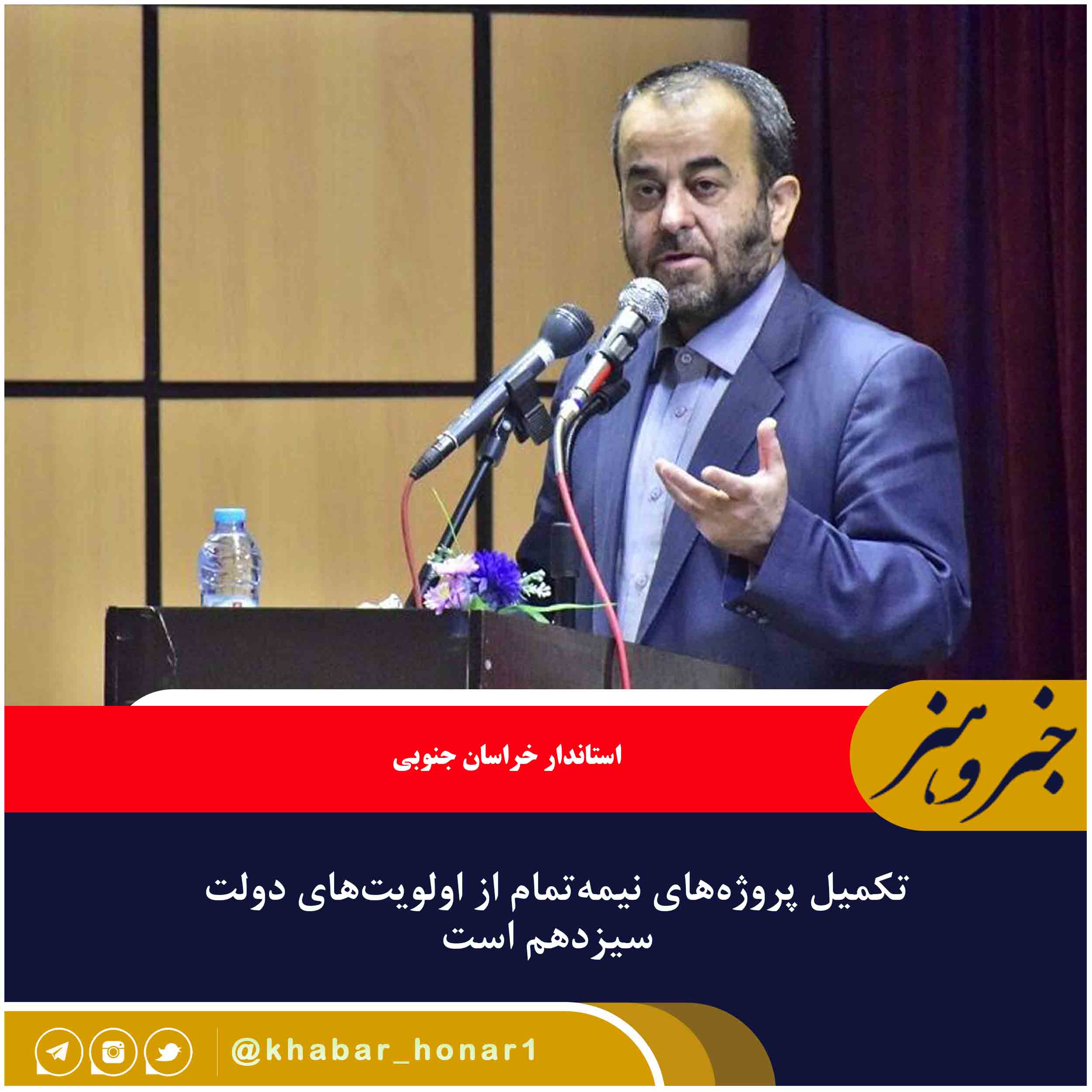 استاندار خراسان جنوبی گفت: تکمیل پروژههای نیمهتمام از اولویتهای دولت سیزدهم است که مدیران دستگاههای اجرایی باید نسبت به تحقق این هدف مهم با جدیت و جهادگونه عمل کنند.