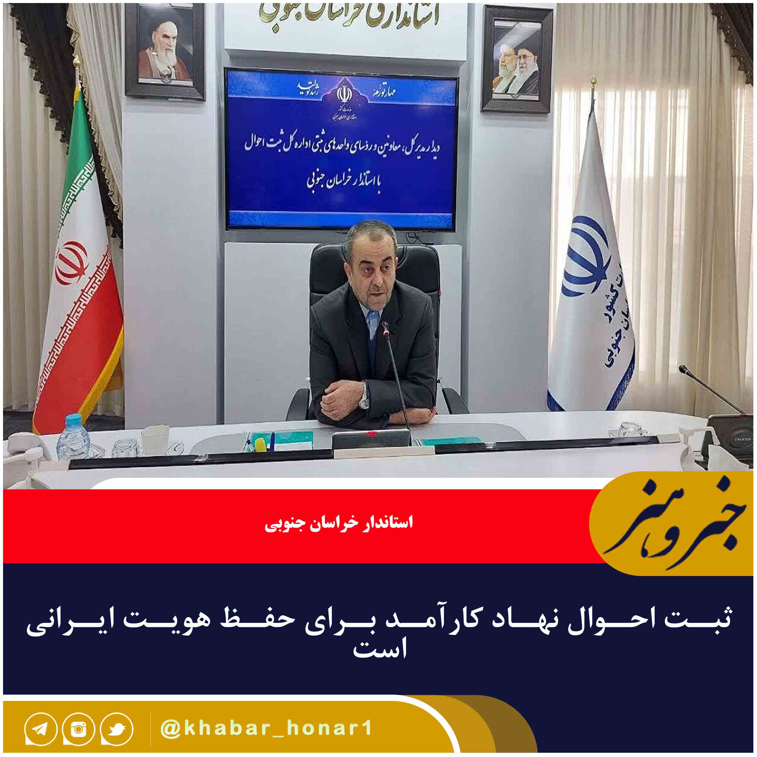 استاندار خراسان جنوبی گفت: ثبت احوال نهاد کارآمد برای حفظ هویت ایرانی است و کارکنان ثبت احوال مرزبانان هویت ایران اسلامی هستند که رسالت آنان را سنگین میکند.